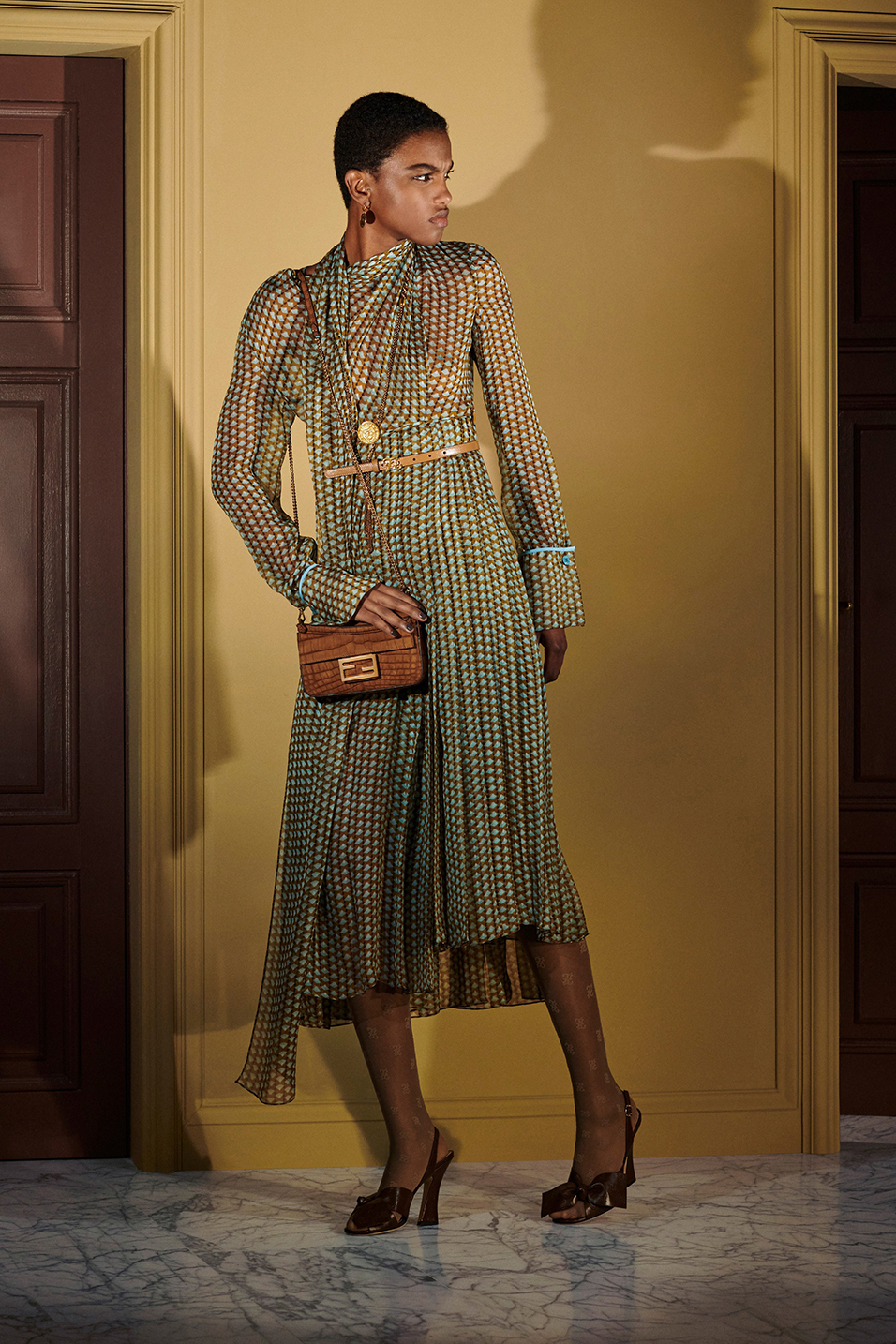 Как выглядит первая коллекция Fendi без Карла Лагерфельда? Сильвия Вентурини Фенди вдохновлялась кинодрамой Джона Кассаветиса «Глория» 1980-го года, в котором главная героиня разгуливала в одновременно классических и провокационных нарядах от Эмануэля Унгаро. Отсюда широкие брюки с высокой посадкой, популярная в 80-х кожа, шелковые блузы и блейзеры из шелкового жаккарда.