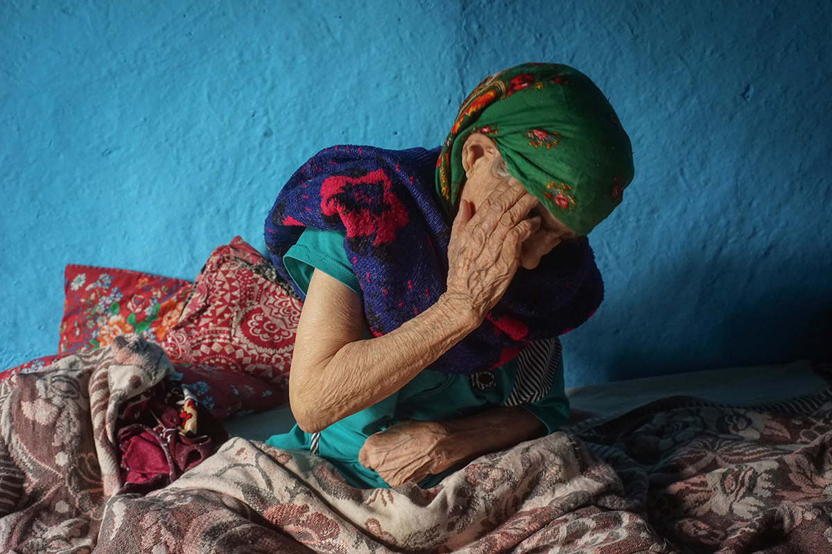 Самый маститый и профессиональный участник – это голландский фотограф Ариан Зварт. Если в поисковике всемирной паутины вбить это имя, первыми в списке будут ссылки на его знаковый альбом о цыганских курдах (Боша). Чтобы заполучить эти проникновенные кадры, он жил с табором по специальным резервациям. Все его портреты объединяет фирменный стиль фотографа: в каждом типаже угадывается эмоция и личность, даже если герой кадра пытается скрыть лицо, как, например, местная жительница села Сым. У синей стены в разноцветном зелено-красно-фиолетовом платке-келагаи, сидя на полу среди узорчатых тюфяков, женщина пытается скрыться от объектива. Возможно, она в процессе молитвенной медитации. Морщинистая кисть ее руки со вздутыми венами закрыла лицо, но при этом не хуже него говорит о прошлом. Стена как говорящий сам за себя фон, на котором разворачивается история отдельно взятого поколения.