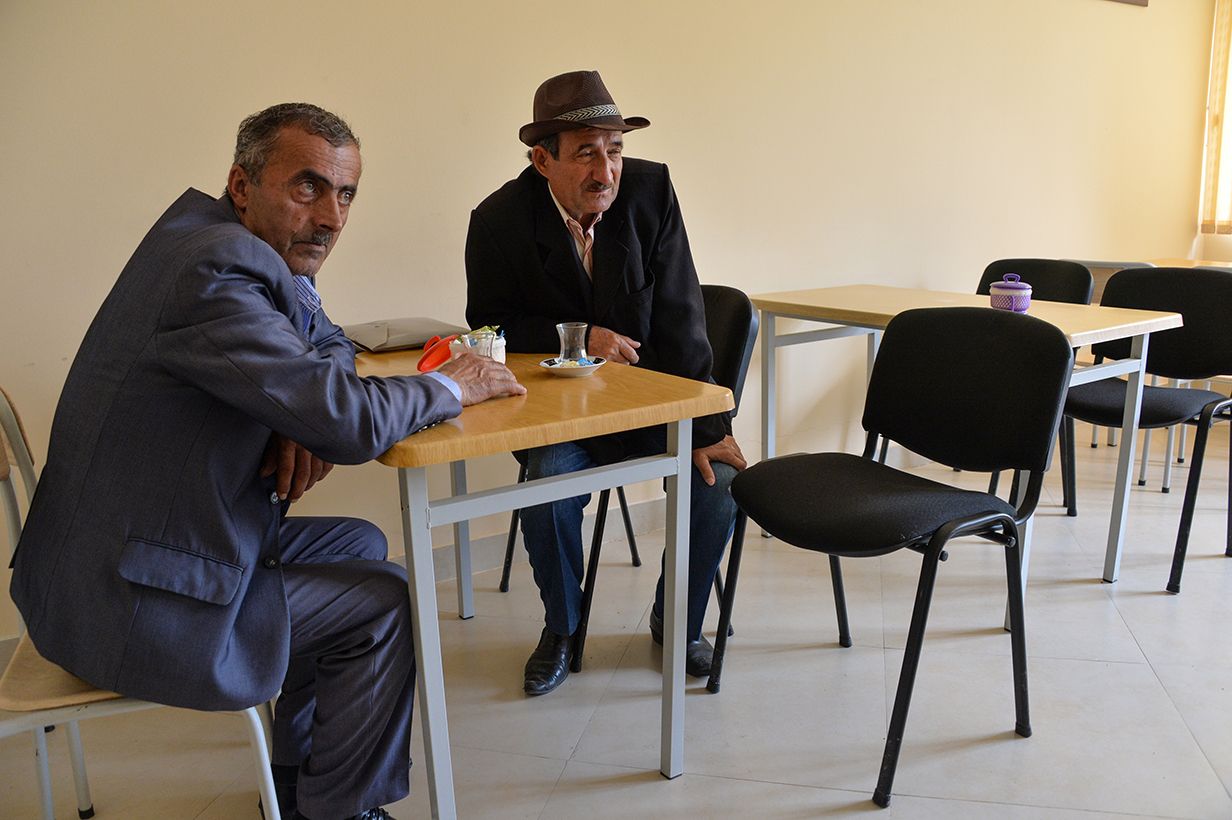 Среди типажей сельчан в глаза бросается портрет седовласого сельского то ли учителя, то ли директора школы в окружении учащихся. Герой уж очень походит на персонажа классика-сатирика Мирзы Джалила, особенно рядом с фотокартиной, на которой овцы мирно пасутся на зеленой лужайке.