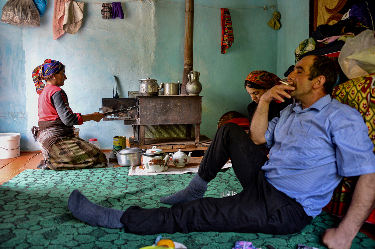 По ходу подъема в горное село Сым Астаринского района внутренне ощущаешь параллельный процесс погружения в фольклорный быт зоны Талышских гор. Где заканчивается асфальт, там начинаются сумерки уходящего фольклора на фоне роскошной, почти первобытной природы. Внутренняя волна возносит вас на вершины гор – в самое южное село на лесном склоне горного хребта практически на границе с Ираном. Посольство Королевства Нидерландов поддержало идею и саму реализацию проекта. Чрезвычайный и Полномочный посол Королевства Нидерландов в Азербайджане Онно Керверс не раздумывая сам принял участие в фотоэкспедиции. Бывалый странник, он запечатлел проникновенную связь времен. Как будто машина времени переносит меня во времена молодости бабушек и дедушек, в мир их юности, где никто никуда не спешит и современные блага вроде мобильных телефонов кажутся фантастикой из очень далекого будущего. Зато аутентичный быт содержит все характерные атрибуты фолька: ковер, деревянная люлька для младенца, разожженная печь…