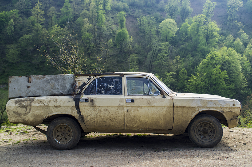 Безупречен технический параметр печати выставочного материала для фотокадров. Жесткий отбор фотоматериала происходил практически ежедневно с самого первого дня и до самого запуска в печать итогового каталога. Благодаря кропотливой работе куратора Рустама Гусейнова здесь нет ни одного проходного кадра, зато собраны артефакты из материального и нематериального наследия сельчан. Вот кадр с останками советского автораритета «Волга» ГАЗ-24, некогда служившего таксомотором в городах СССР и обслуживавшего административную партноменклатуру, за что имел прозвище «членовоз»… Перед зрителем предстает металлолом на колесах, переделанный в пикап для транспортировки металла. Ржавый обесцвеченный кузов выглядит как ходячий металлист в кубе.