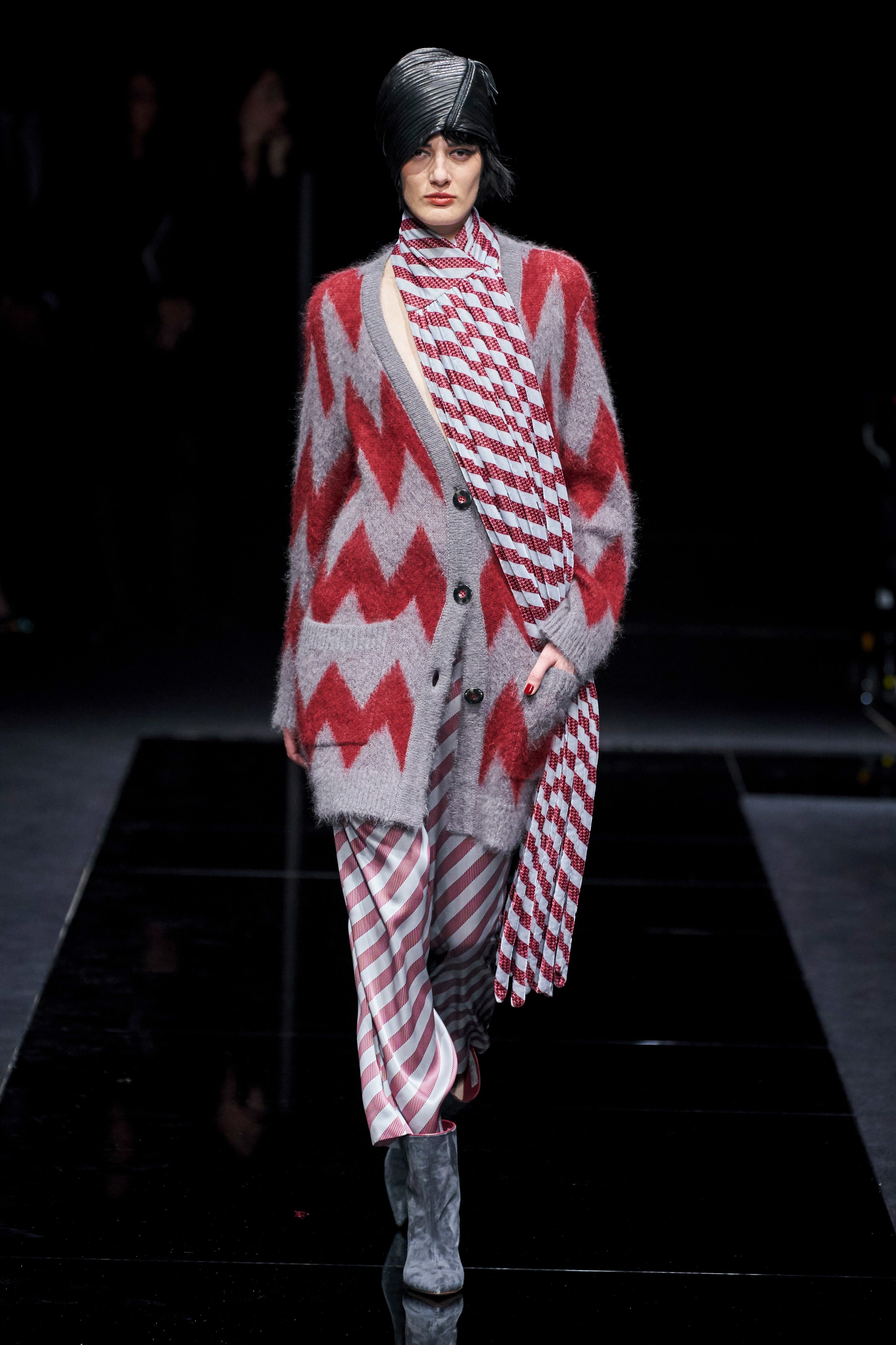 День начался в минималистических пространствах Armani / Silos с открытия выставки аксессуаров «Акцент стиля», куратором которой был сам Джорджио Армани. Впечатляющая выставка охватила сорокалетие работы Армани, раскрыв эксцентричные, экспериментальные и даже фривольные стороны его дизайнерского стиля. Выставка продлится до 2 февраля 2020 года.