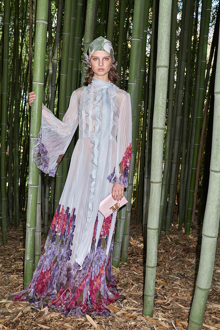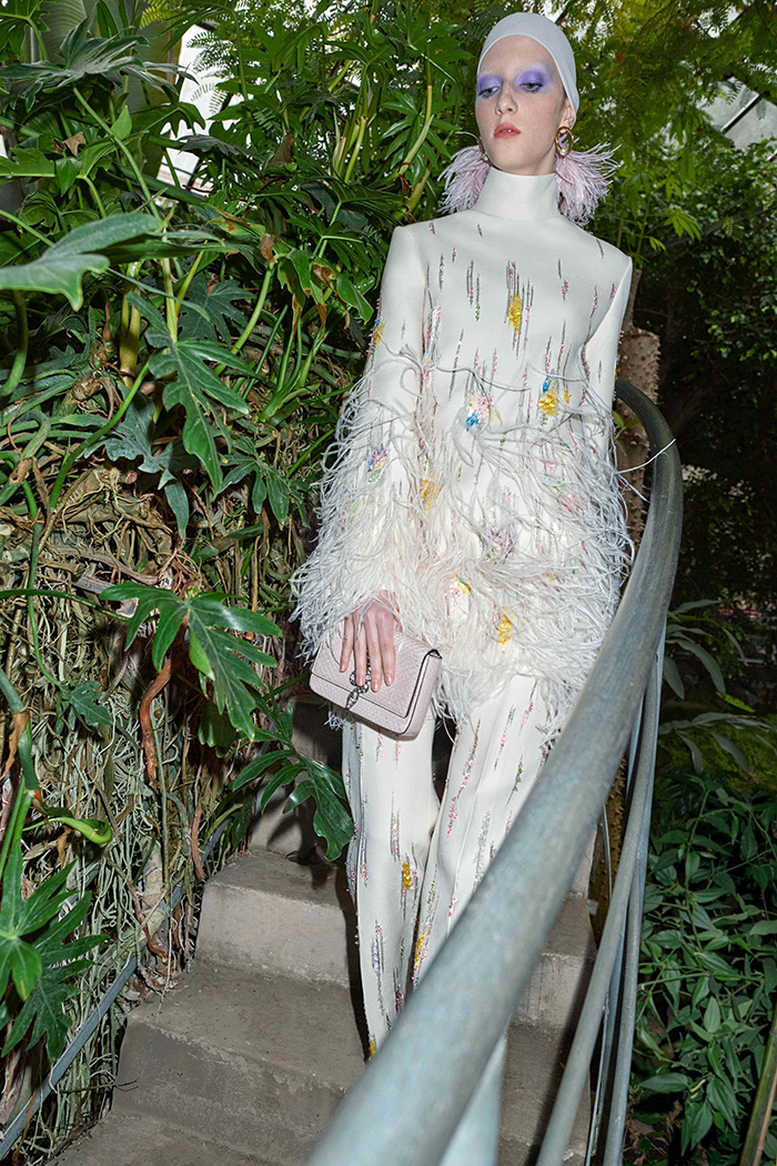 Пьерпаоло Пиччоли отснял свою круизную коллекцию в ботаническом саду в Риме. Кейпы, широкополые шляпы без намека на блеск, шелковые платья-рубашки – и все это в изумительной фиолетовой палитре. Минимализм может быть очень богатым! Вечерние выходы креативный дизайнер Valentino разукрасил пайетками, нежной вышивкой и страусиными перьями вроде тех, в которых позировала Верушка в конце 70-х.