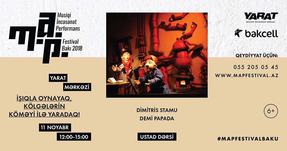 "Merlin" Kukla Teatrının aktyorları Dimitris Stamu və Demi Papada uşaqlarla işləmək təcrübəsinə malikdirlər. Balaca tamaşaçılarına işıq və kölgə ilə nağıl yaratmağı göstərəcəklər. İştirak şərtləri: 6+