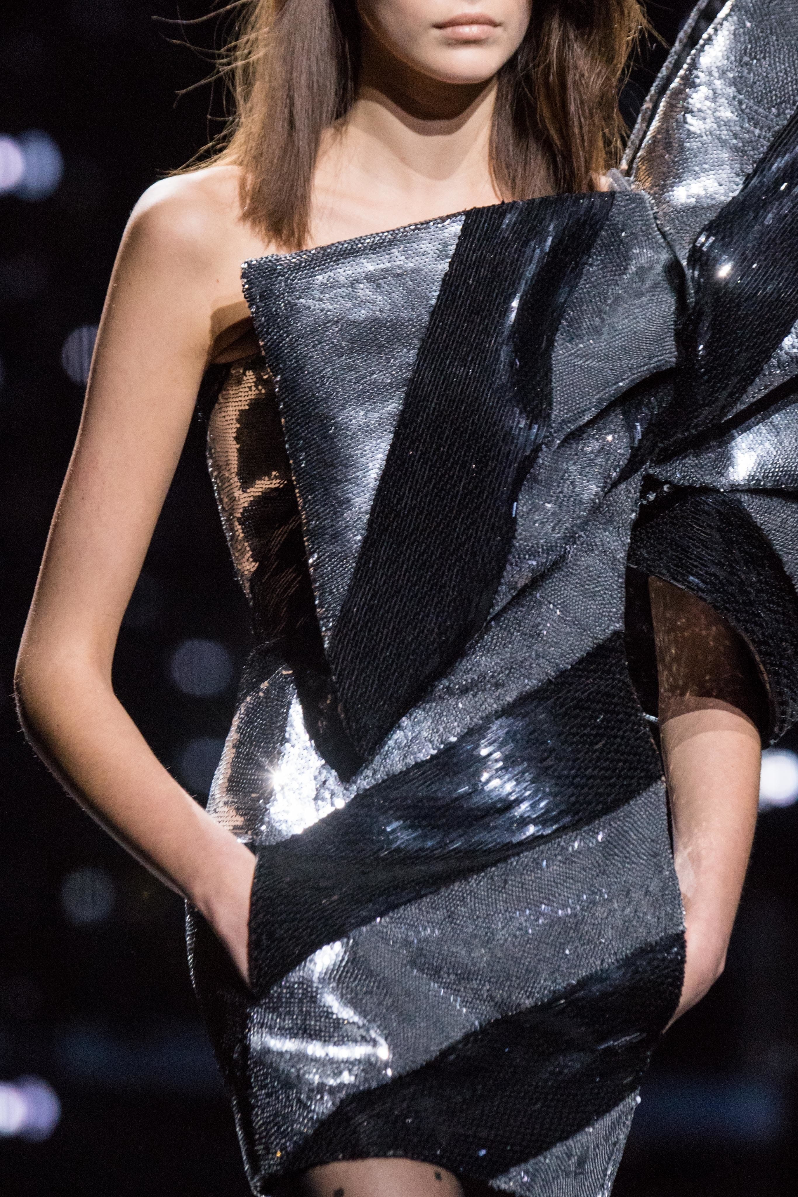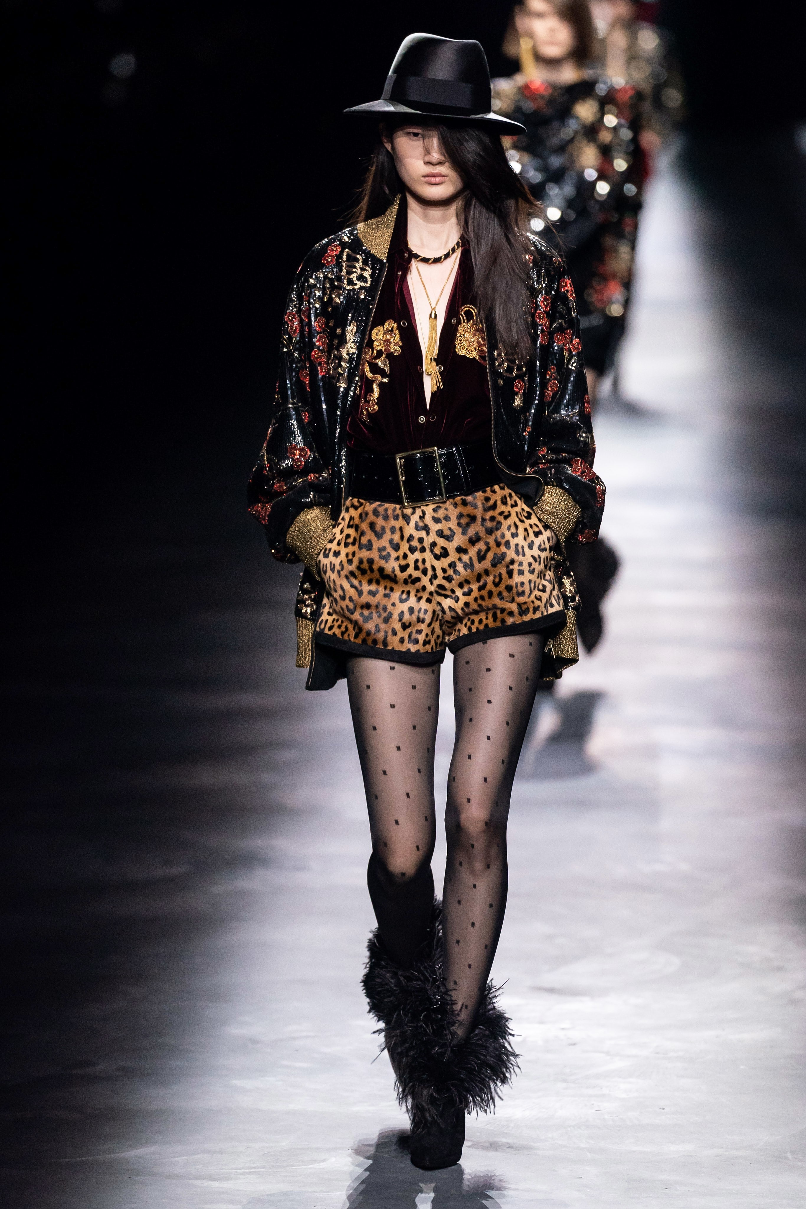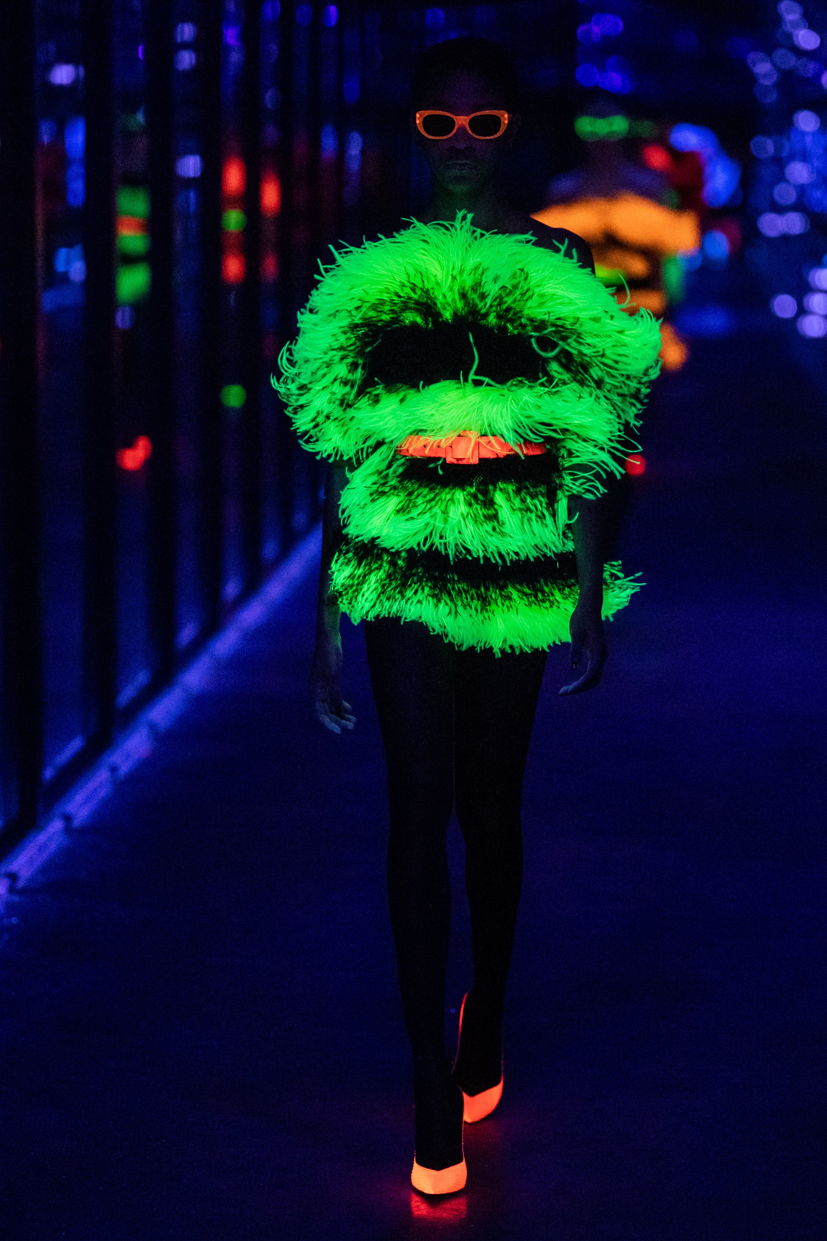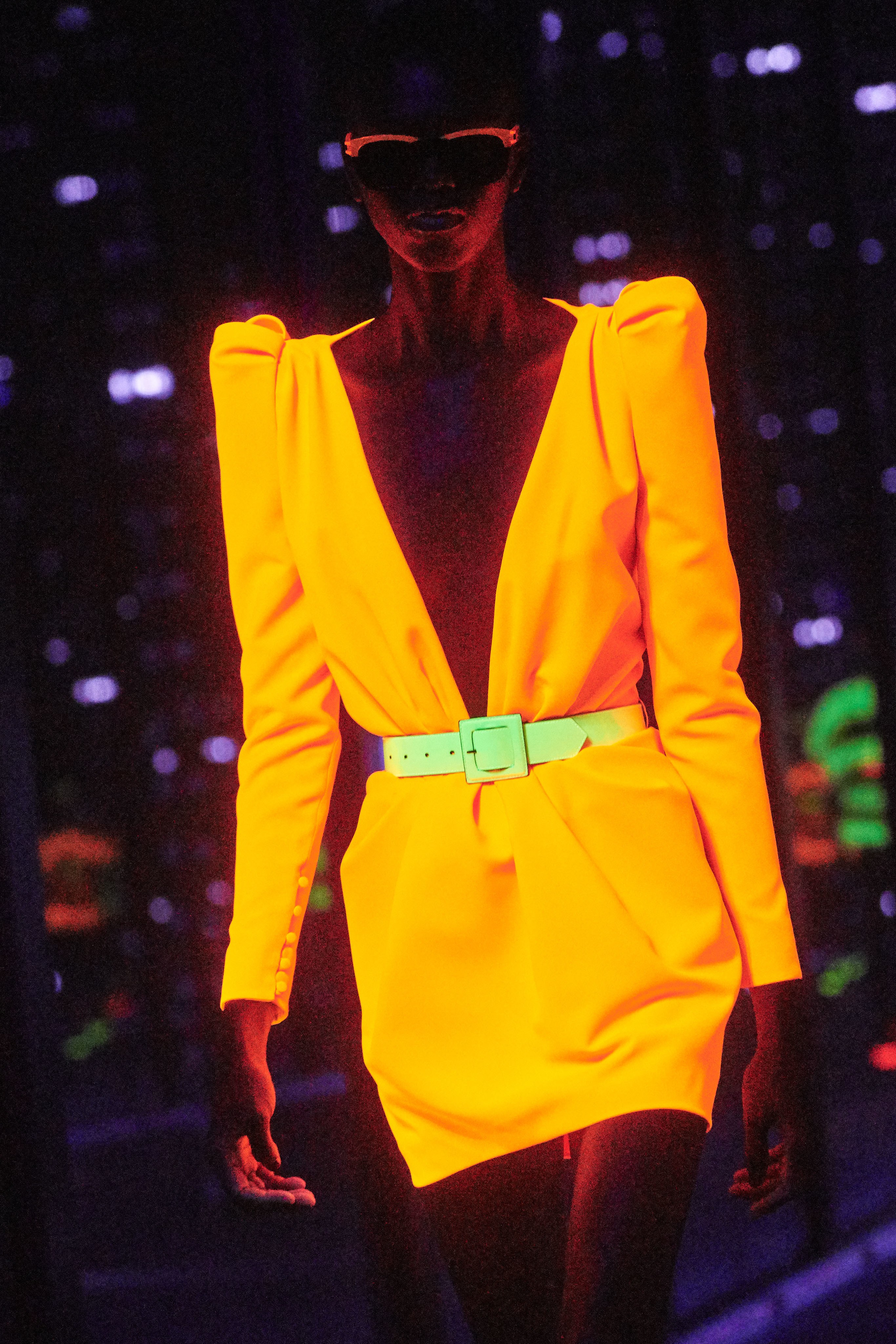 Saint Laurent brendinin kreativ direktoru Entonu Vakkarellonun payız-qış kolleksiyası 80-ci illərin modasından ilhamlanmışdır: uzun trençkotlar, böyük bantlar, ciddi kostyumlar, həcmli fənər-qolluqlar. Dizayner 80-ci illərin qollarını tikmək üçün altı ay vaxt sərf etdiyini etiraf etdi. "Kolleksiyanın bütün detalları əl ilə tikilib" – Vakkarello qeyd etdi. Nümayişin birinci hissəsi Paris gecəsi romantik bir gəzintiyə bənzəyir. İkincisi texno-rayvın tam təcəssümüdür: modellər tamamilə qaranlıq podiumda yürüdülər, eyni zamanda isə yalnız göz qamaştırıcı neon paltarları görünürdü.