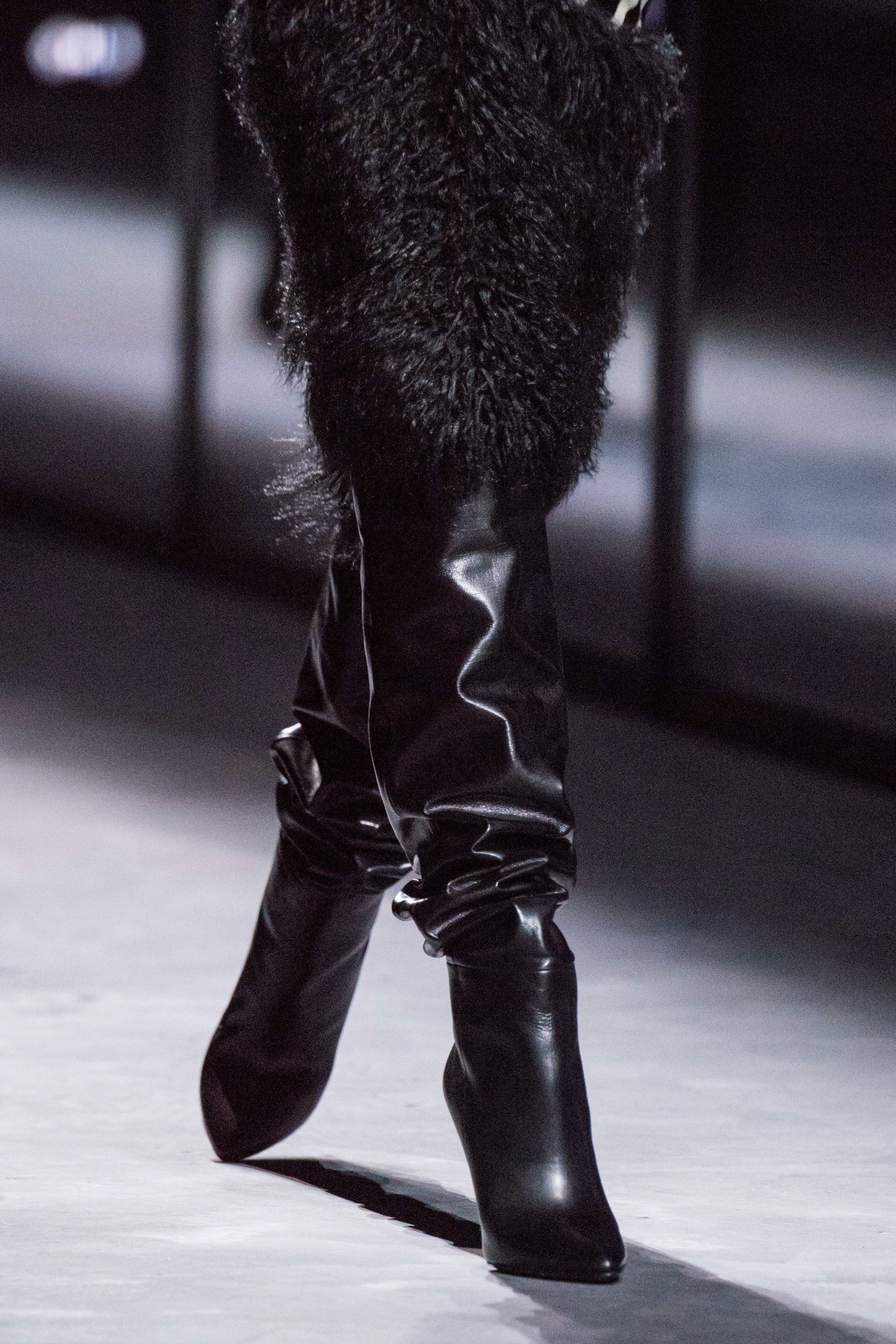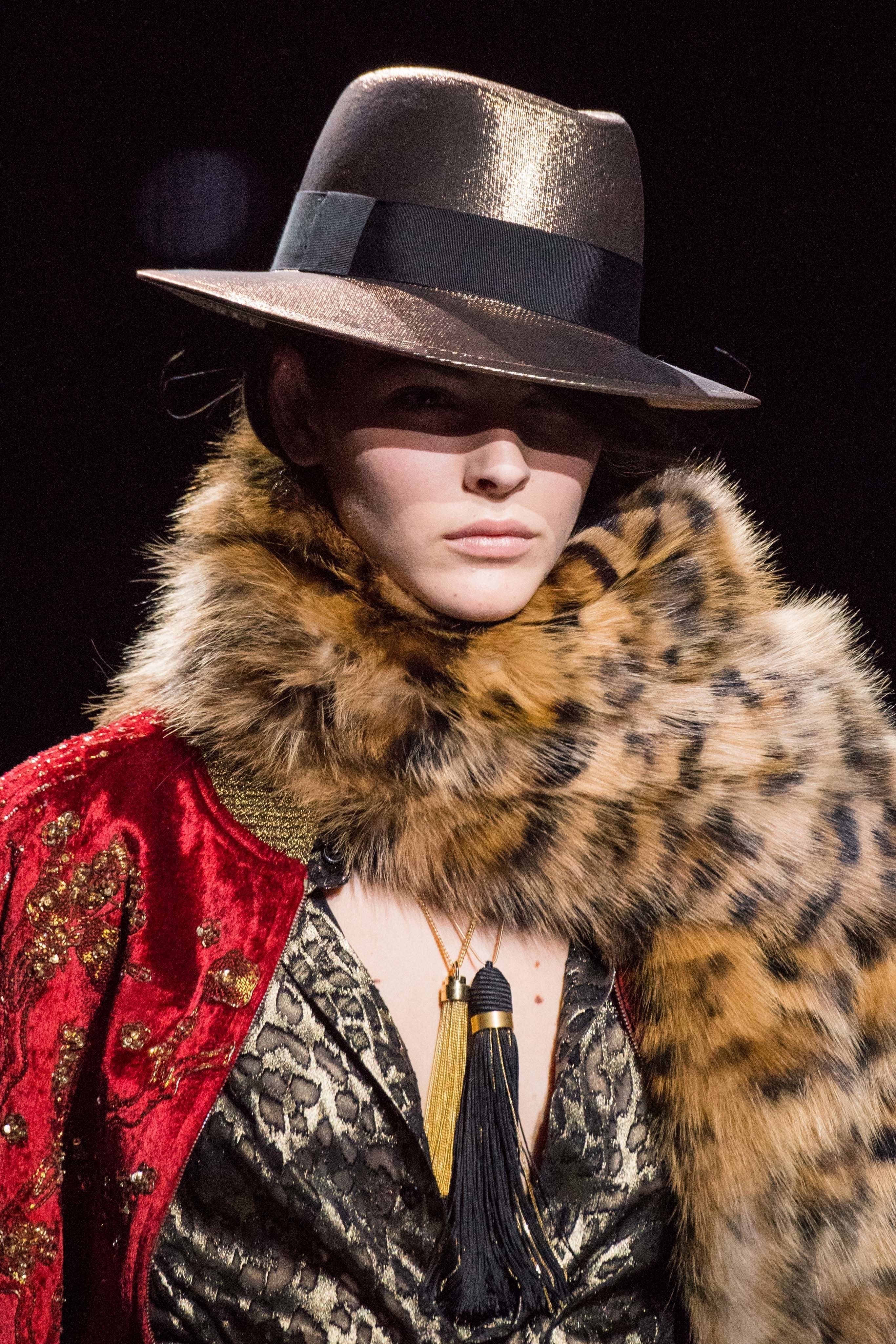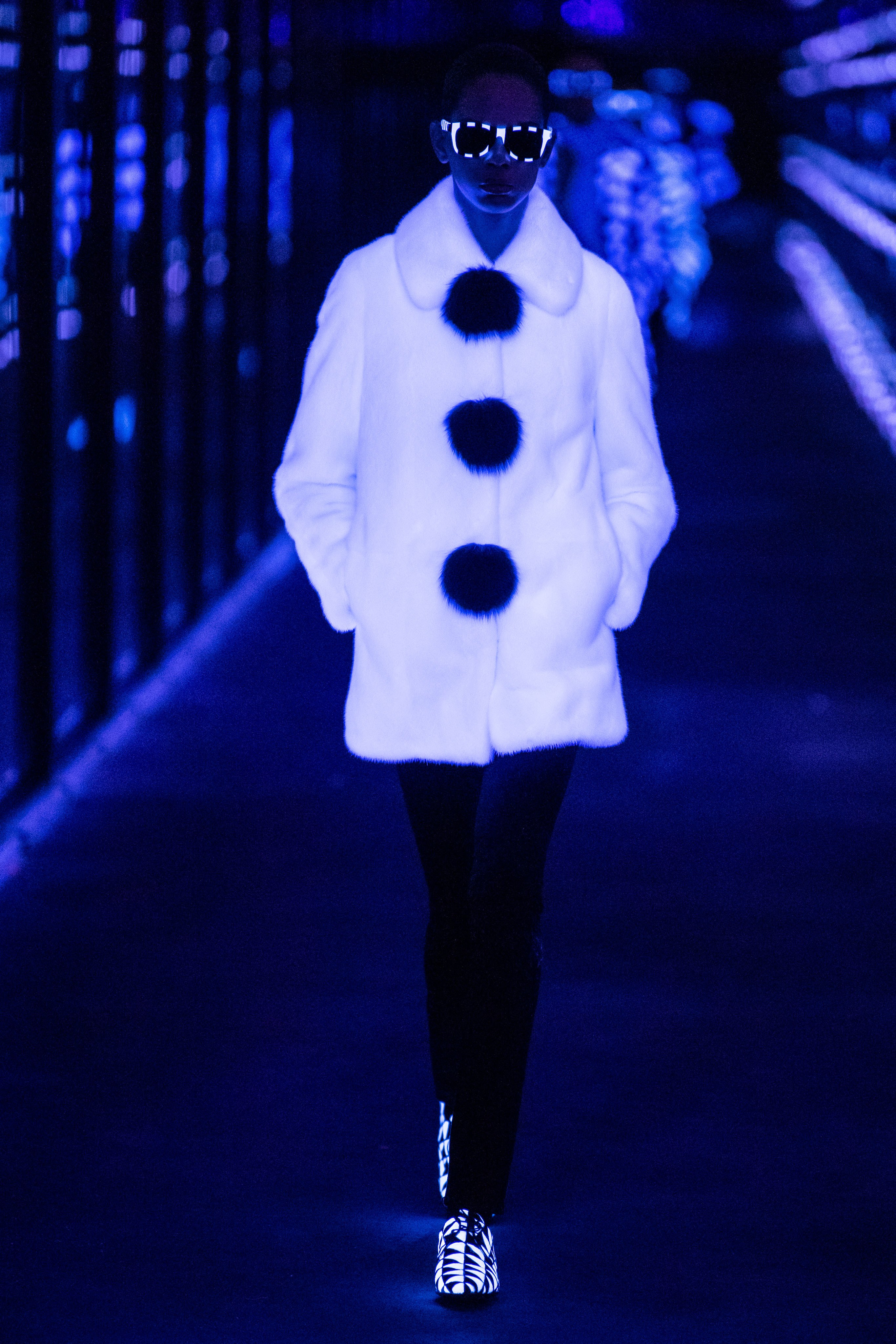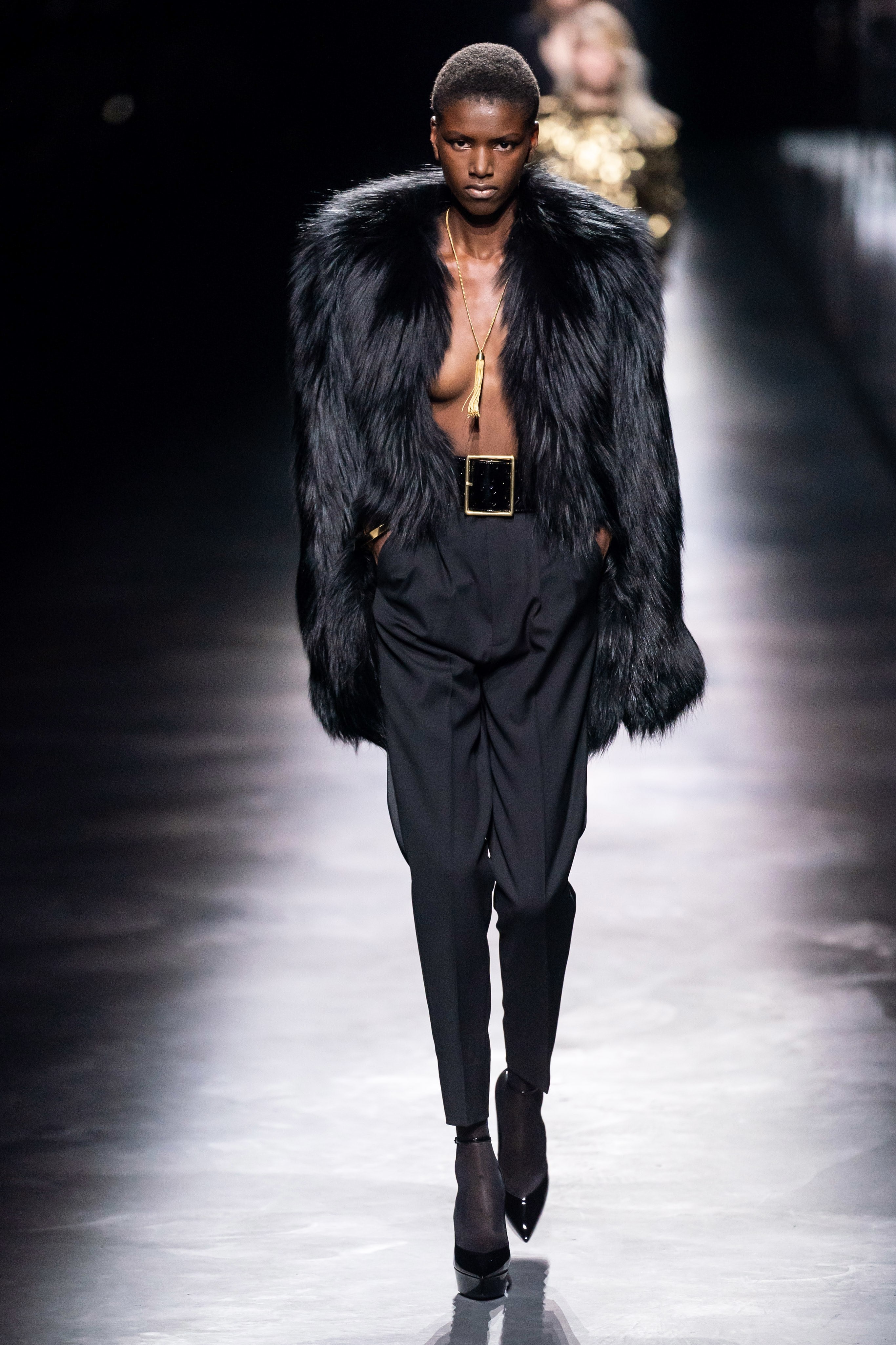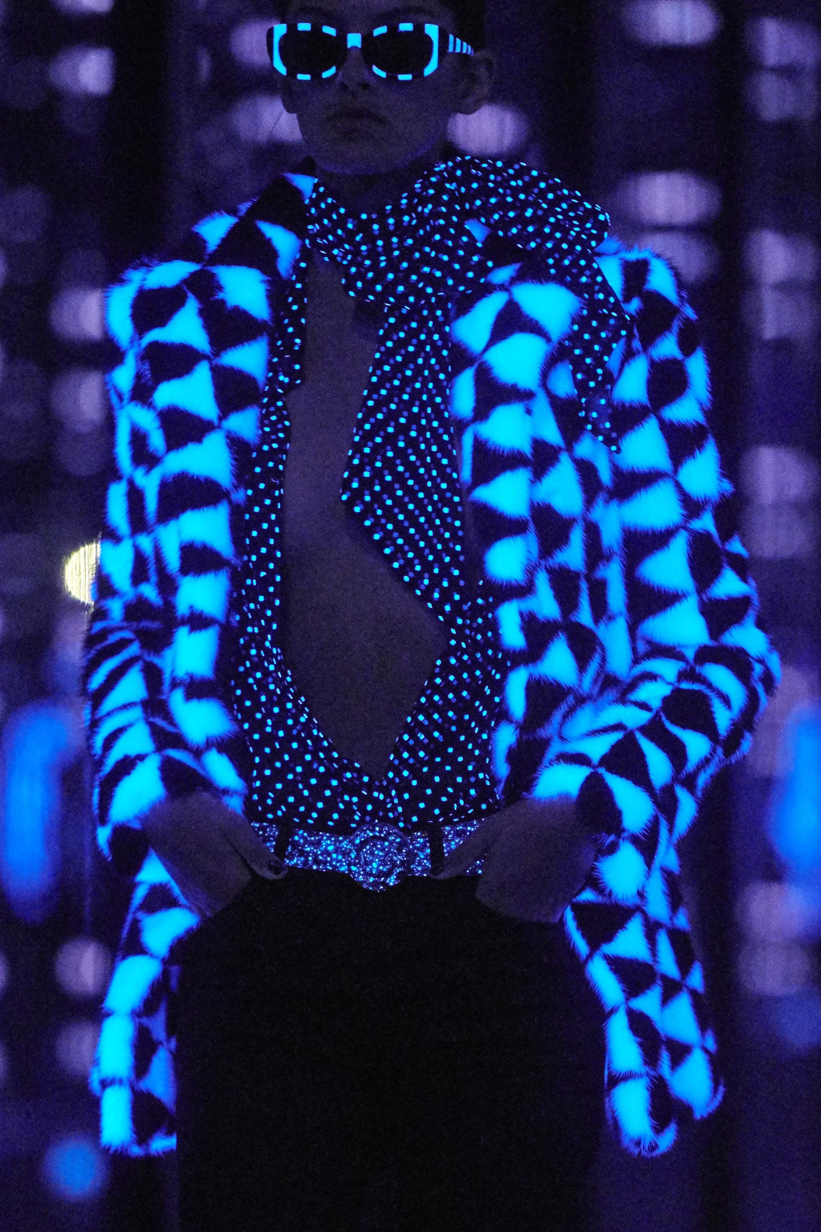 Saint Laurent brendinin kreativ direktoru Entonu Vakkarellonun payız-qış kolleksiyası 80-ci illərin modasından ilhamlanmışdır: uzun trençkotlar, böyük bantlar, ciddi kostyumlar, həcmli fənər-qolluqlar. Dizayner 80-ci illərin qollarını tikmək üçün altı ay vaxt sərf etdiyini etiraf etdi. "Kolleksiyanın bütün detalları əl ilə tikilib" – Vakkarello qeyd etdi. Nümayişin birinci hissəsi Paris gecəsi romantik bir gəzintiyə bənzəyir. İkincisi texno-rayvın tam təcəssümüdür: modellər tamamilə qaranlıq podiumda yürüdülər, eyni zamanda isə yalnız göz qamaştırıcı neon paltarları görünürdü.