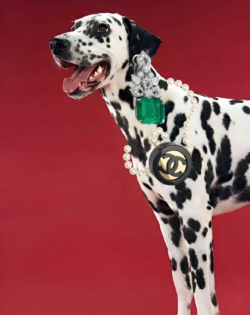 Bvlgari Emerald Dance earrings / CHANEL micro bag necklace