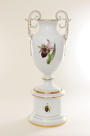 Macar Evinin növbəti hədiyyəsi olduqca zərif çinidən hazırlanmış ağ və fil sümüyü rəngli güldanların tandemidir. Onlar da, həmçinin əl ilə rənglənib və qablardan biri 24 karatlıq qızılla çəkilmiş naxışlarla bəzədilib. Güldanların hündürlüyü 63 sm-dir ki, bu da onları evin bəzəyinə çevriləcək interyerin müstəqil parçası edir.