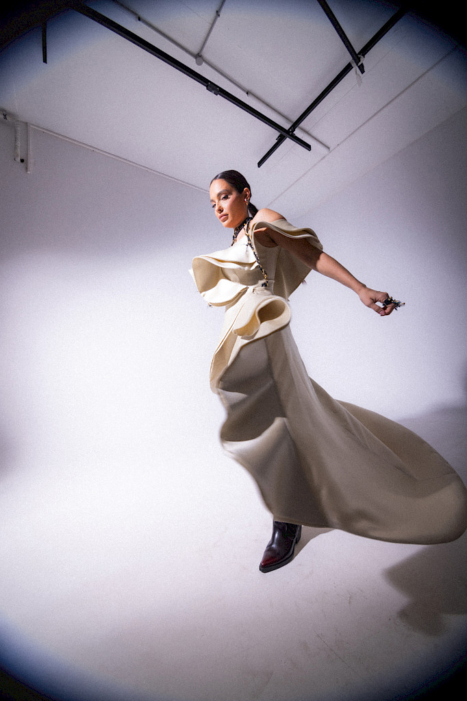 My musical career began exactly ten years ago. It all started with my involvement in a Fusion Band. Three or four years later, I enrolled at the Azerbaijan State University of Culture and Arts, where I successfully completed my Bachelor’s degree in 2020. In 2024, I continued my studies by joining the Master’s programme. Before this, I had pursued my first higher education at Baku State University, Faculty of Law. During this time, I participated in the “Böyük Səhnə” project and became a finalist in the Eurovision qualifying round. I have released several songs and music videos, with the composition Shusha, written by Natalia Goncharova and Zahra Badalbeyli, standing out in particular. This song, sung in Azerbaijani, Russian, and English, was released in August 2020, just before the war, and has deeply resonated with Azerbaijanis worldwide. I regularly perform at state events and concerts, as well as charity events. A month ago, I was honoured to be among the winners of the prestigious annual Turkish “Altın Kelebek” Award. I would also like to mention that I had the privilege of being the face of the 16th season of Our Country’s Fashion Week. Fashion holds a significant place in my professional life. Staying on top of trends, styles, and directions has become necessary. I have no attachment to a single style, as every stage appearance requires a different look. Much of my daily routine is dedicated to exploring and implementing these stylistic solutions. In particular, I prefer and love to wear clothing from our local brends.
