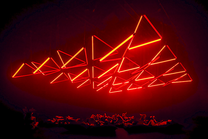 Böyükmiqyaslı şoularımda da eyni prinsip var: onlar tam qaranlıqdır. Qaranlıq və geniş bir məkan insana kilsədə olduğu hissini verir. İnsan hansı dinə bağlansa da, kilsəyə girəndə müəyyən bir duyğu yaşayır.