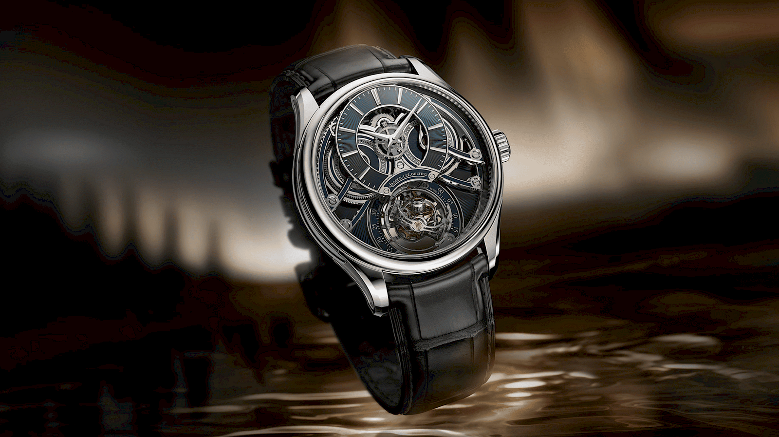 The Excalibur Biretrograde Perpetual Calendar reflects the theme “Movements of the Sky” by tracking time over 122 years with a complex openworked movement.