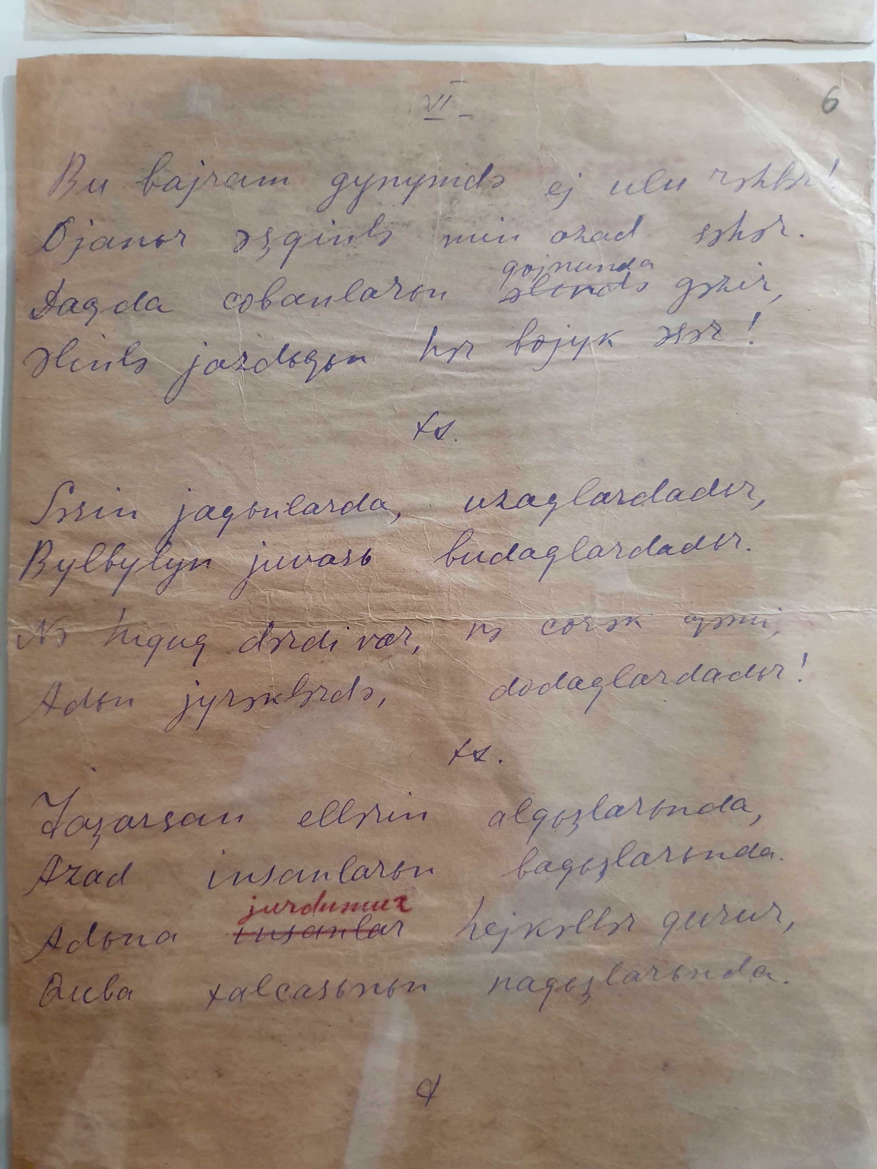 Samad Vurgun. Song of Happiness, manuscript, 1937