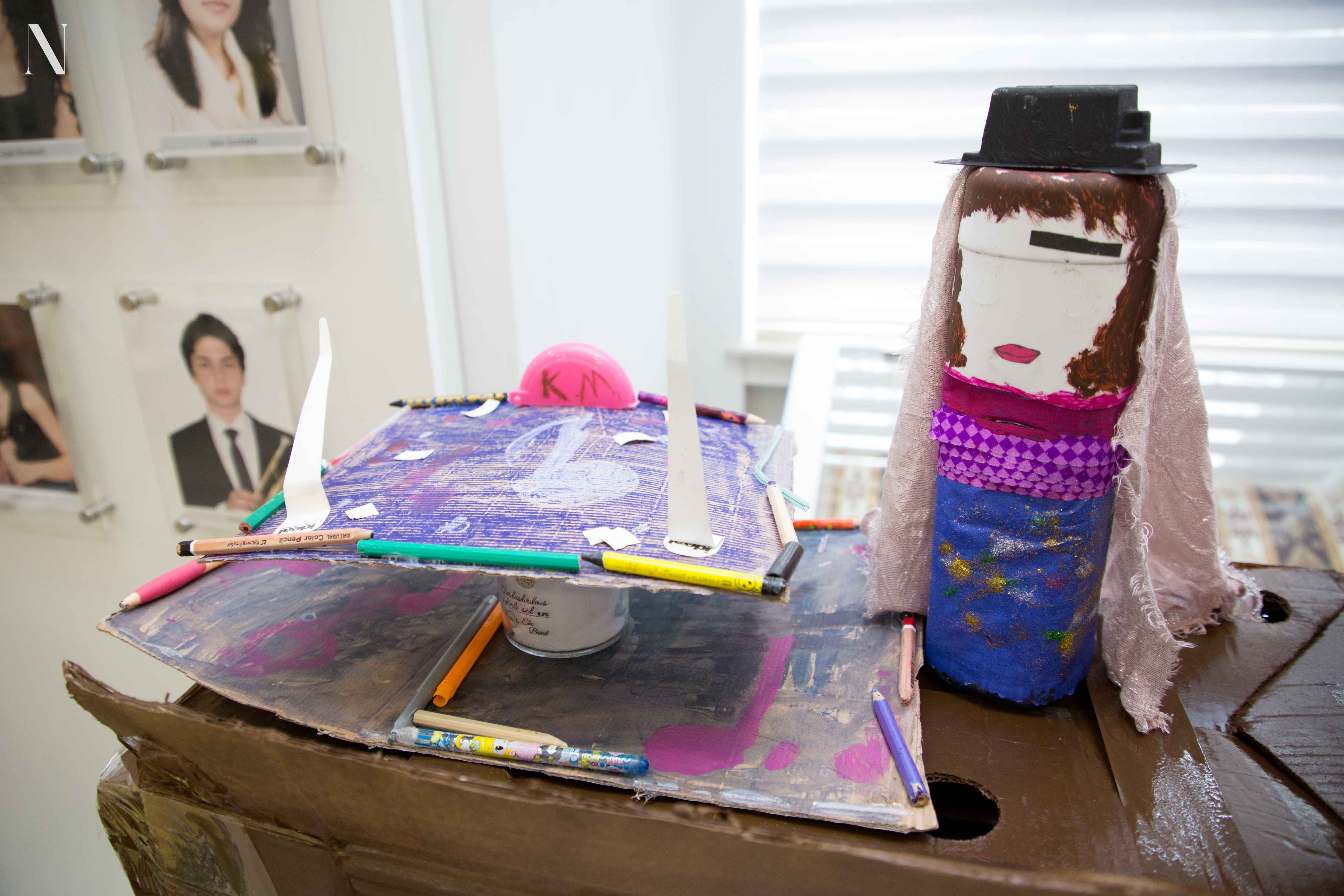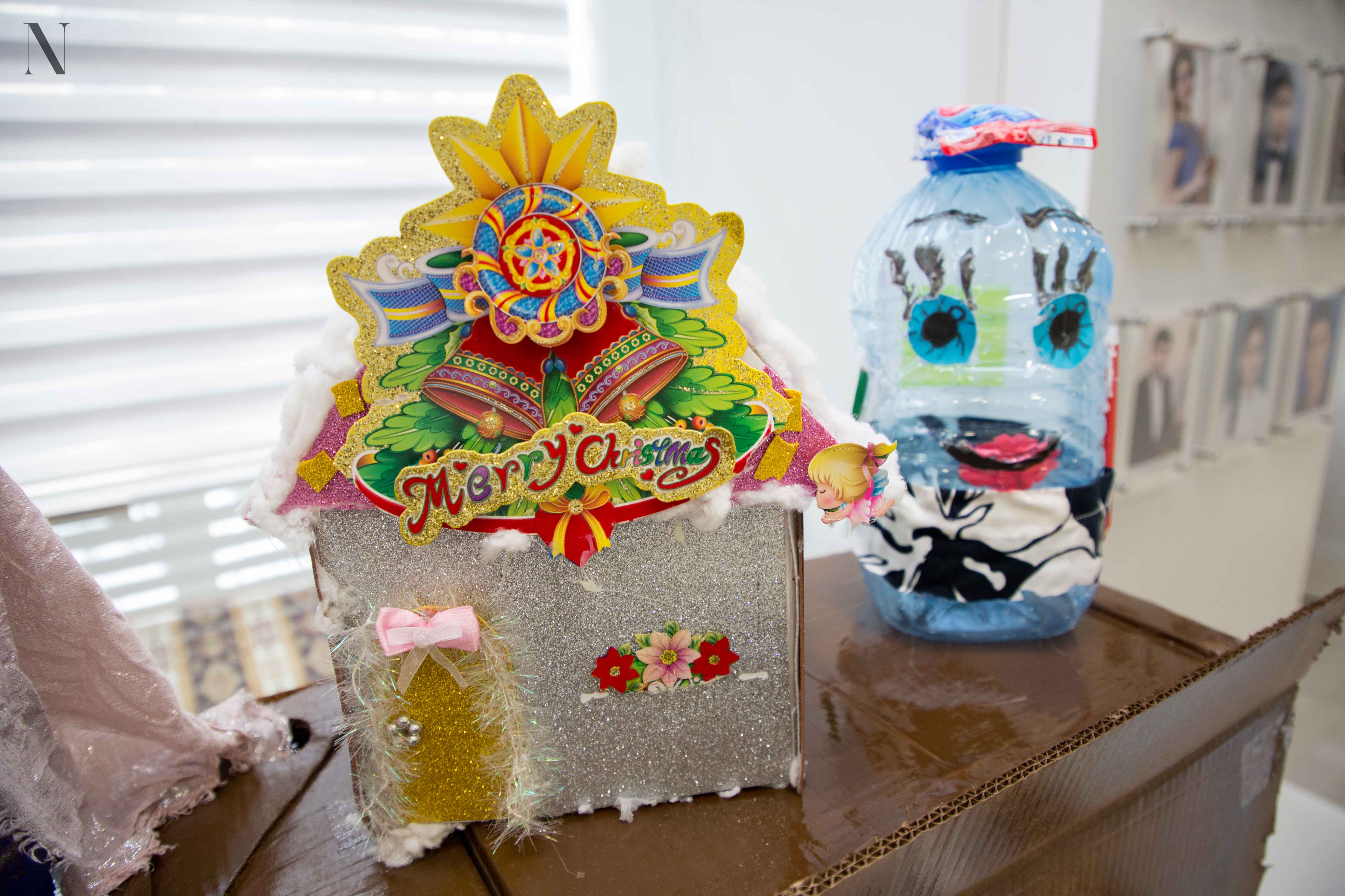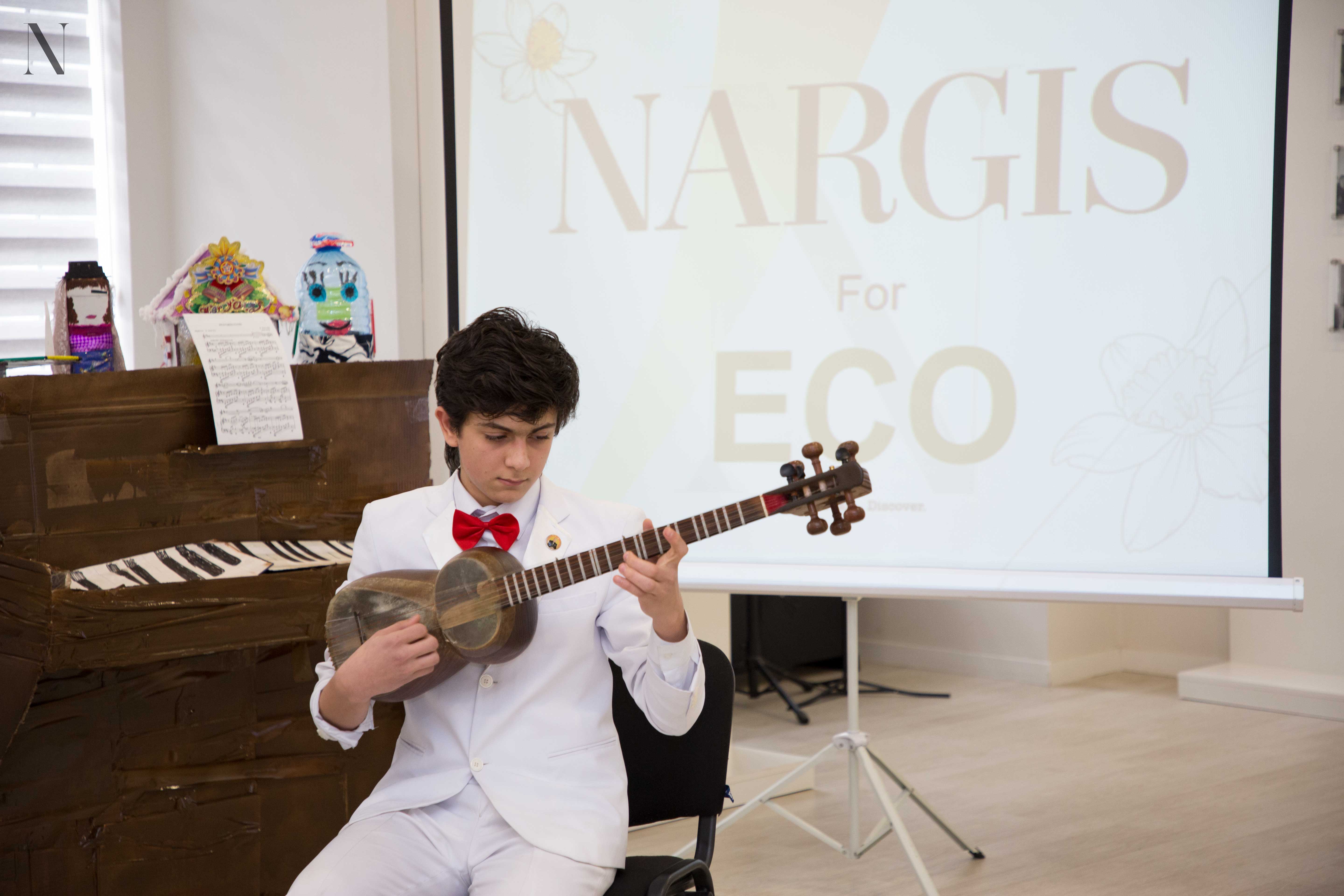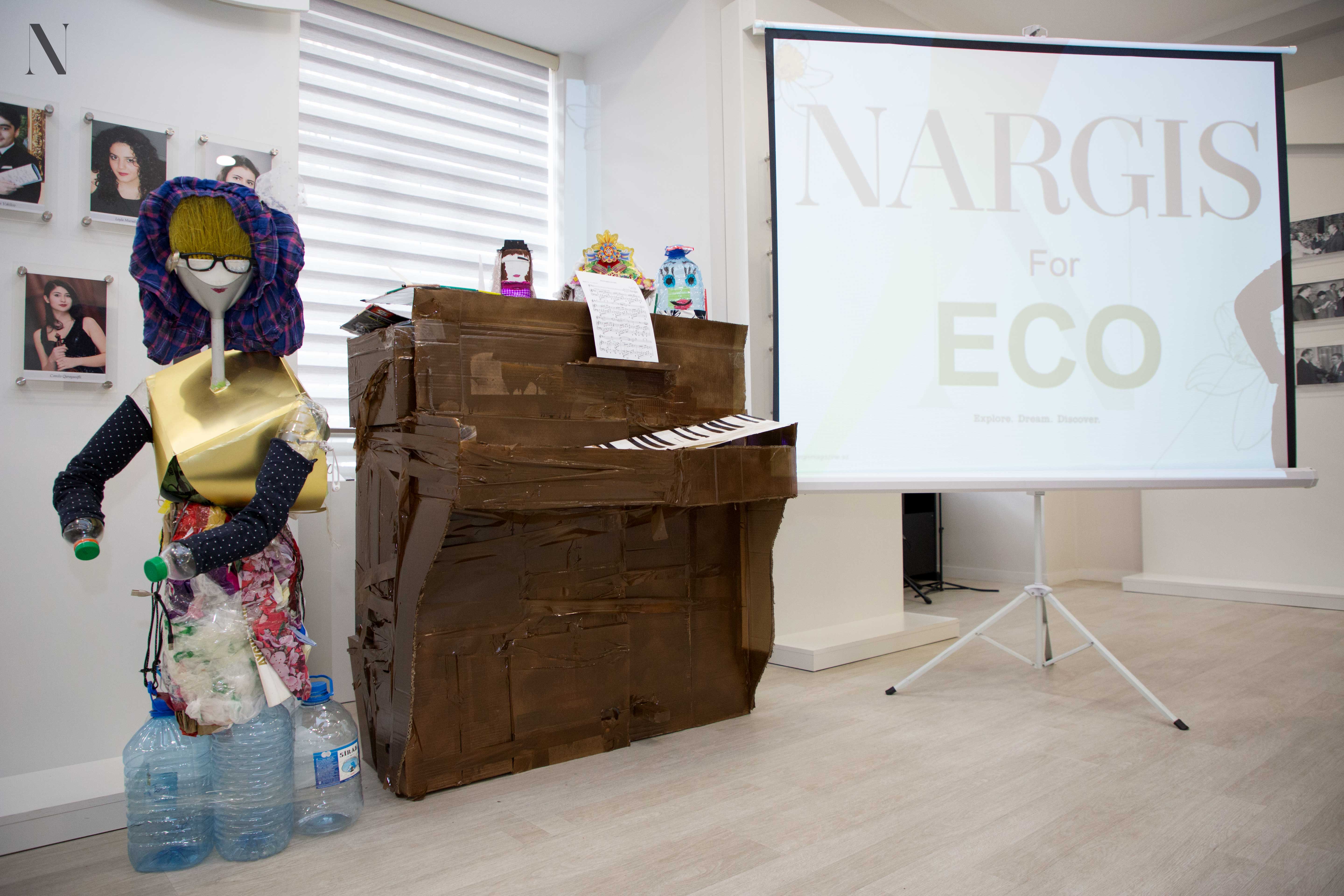 The project NARGIS for ECO raised a particular interest among schoolchildren of the Republican Arts Gymnasium. Gifted students of the gymnasium improvised on different topics and created unique sculptures, including a dragon made of disposable dishes and foil, a pomegranate tree from threads and paper, a swan lake made of disposable forks, a bust of old dishes, various dolls made of different waste materials and even a talking robot! Schoolchildren demonstrated their original works with particular enthusiasm and shared with the NARGIS team how they made them.