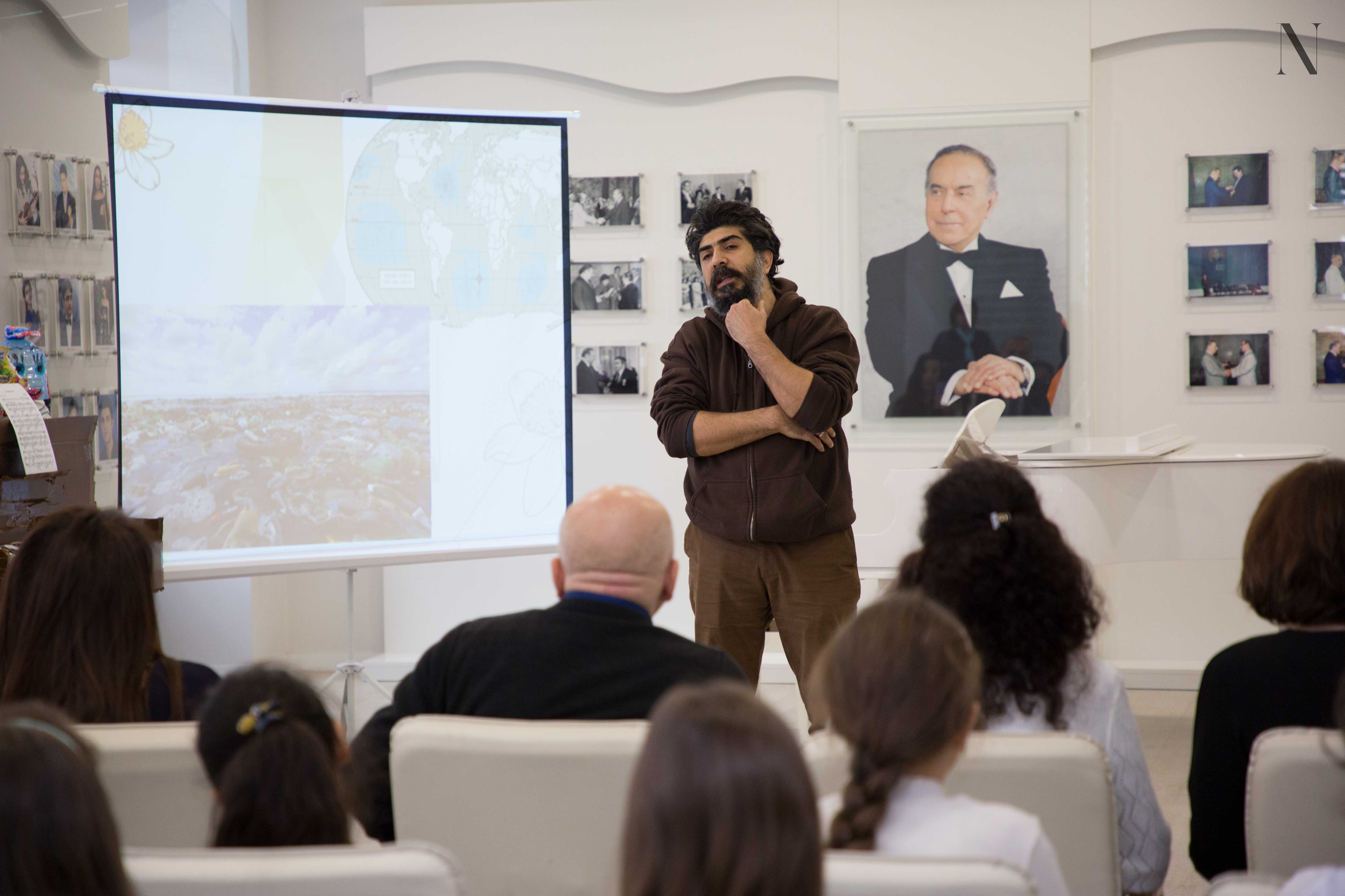On February 21, the NARGIS team within NARGIS for ECO project visited two schools: Bulbul Music School and the Republican Arts Gymnasium. Both schools hosted a master class by artist Rashad Alekperov on the topic "Ecology".
