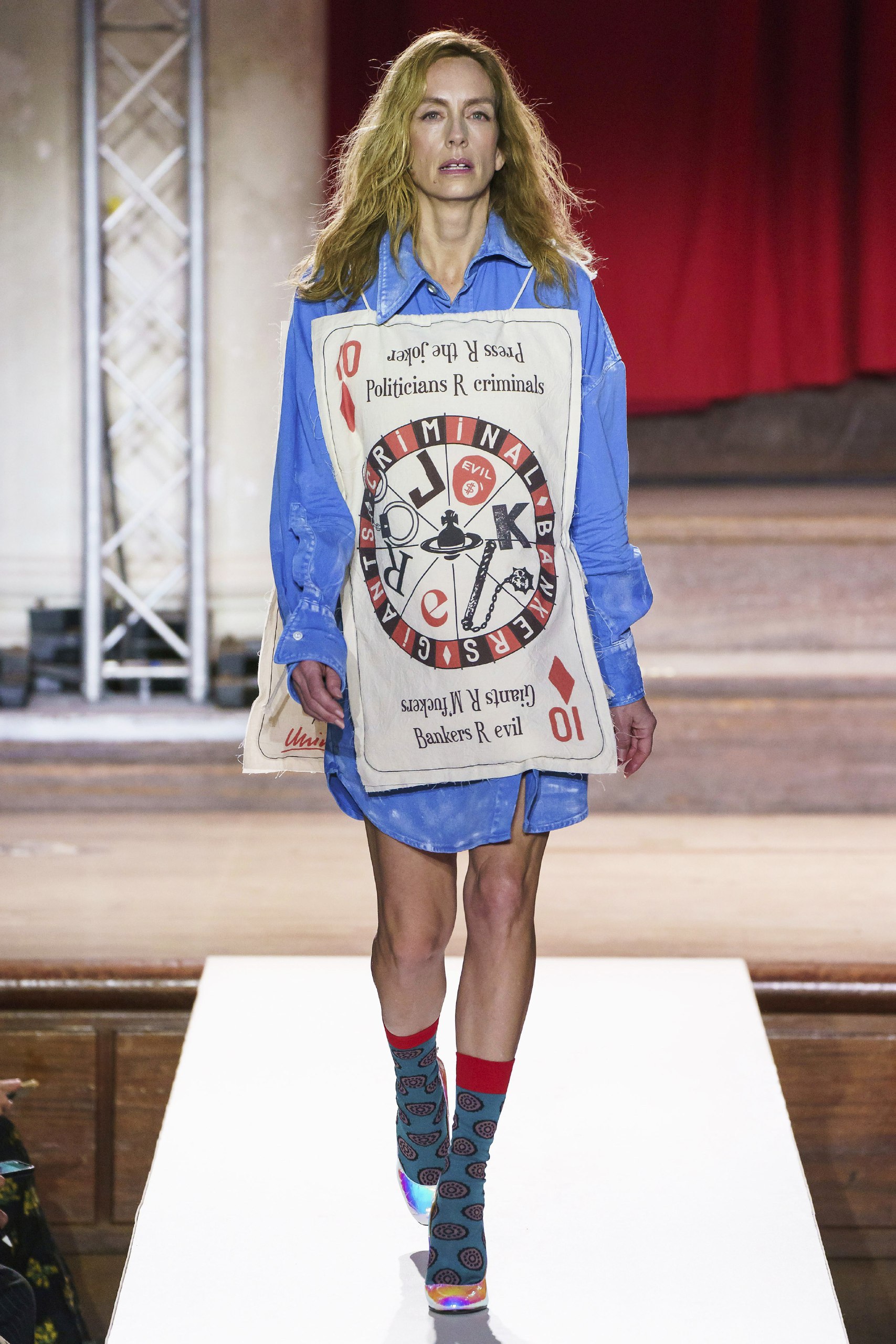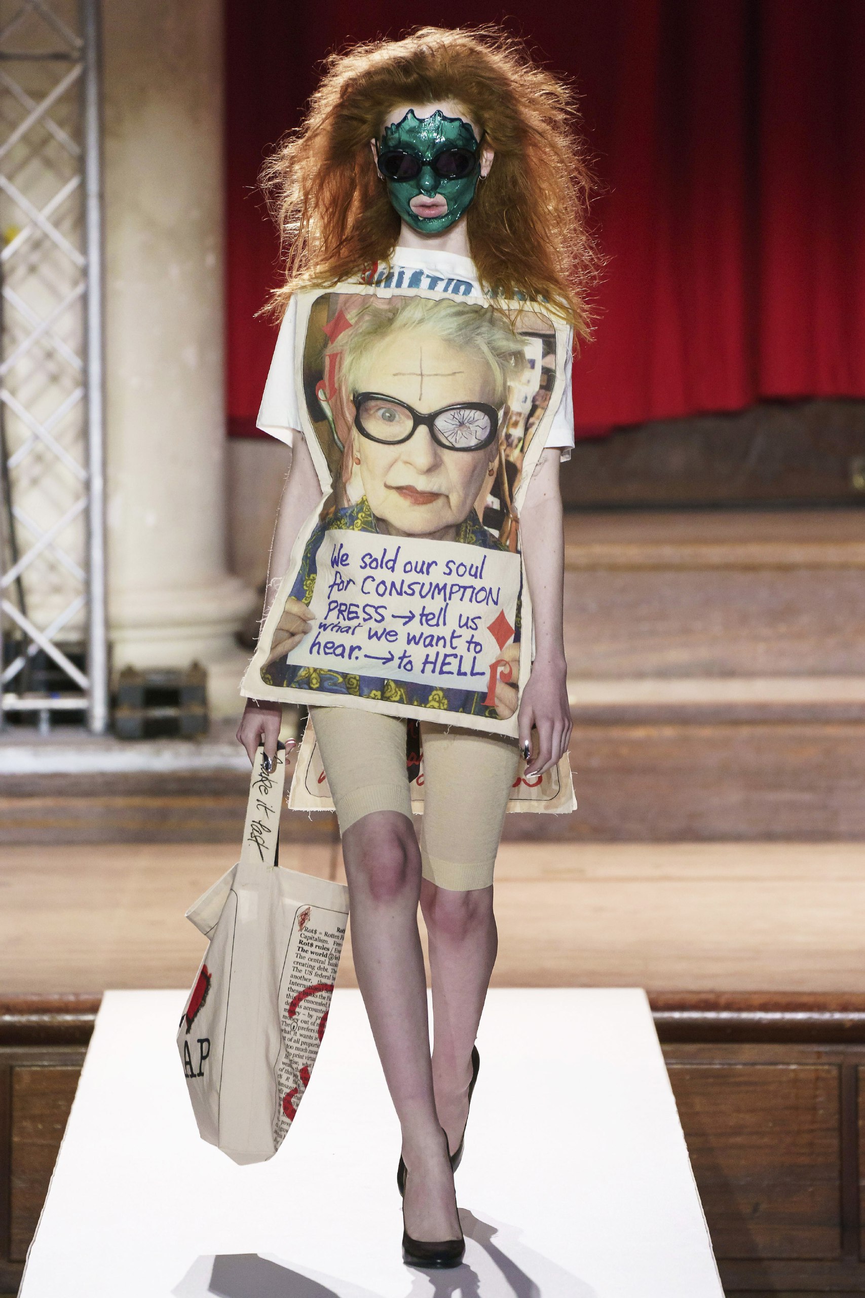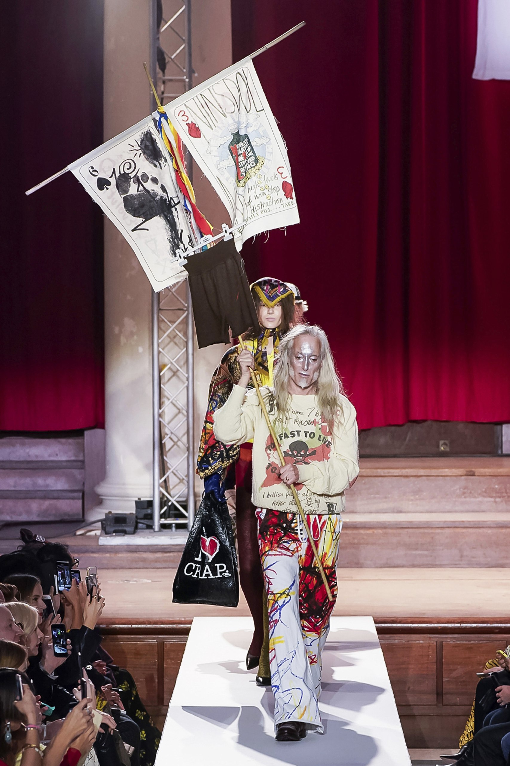 Yesterday within London Fashion Week Vivienne Westwood, holding onto her scandalous image, turned her show to another performance. The podium became a political tribune, on which the designer stated modern world problems: from global warming and freedom of thought to Brexit and and the society overloaded with information. The collection 2019/2020 fall-winter has a name, speaking for itself – Homo Loquax (the word loquax in translation from Latin means "talkative", "chatty").