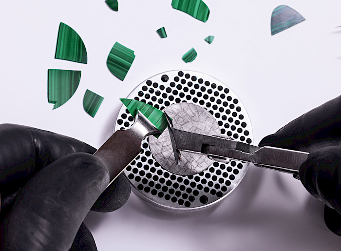 The green malachite marquetry on Lucea’s dial captures the sixties’ fascination with coloured stones. This distinct tableau is composed of small pieces of the mineral that might have been overlooked but, here, are transformed into something beautiful through the art of upcycling. Skilled artisans at the Bulgari Manufacture in Switzerland carefully select each fragment for the vibrancy of its hue and the expressiveness of its grain. Meticulously cut and hand-assembled, every piece contributes to this special creation, rendering each Lucea a unique masterpiece.