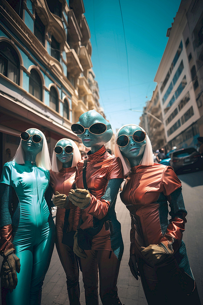 The vibrant fashion scene during fashion week, displaying a fusion of traditional Azerbaijani designs and contemporary styles, captures their interest. Baku residents warmly welcome the unusual guests in spacesuits and even show them around the city. In the end, the compelling blend of culture, fashion, and architectural marvels leaves a lasting impression on the aliens as they depart, thoroughly impressed, back to their home planet.
