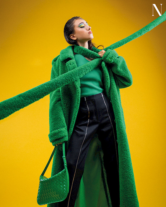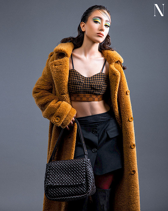 Top, pants VICTORIA BECKHAM, bag BOTTEGA VENETA @EMPORIUMBAKU, coat STAND STUDIO @BISQUEBAKU