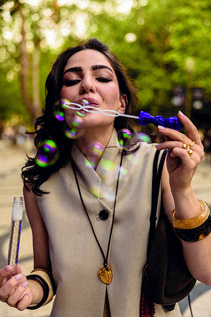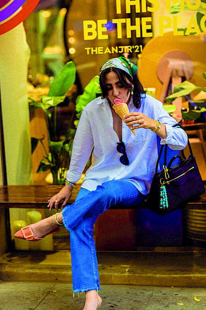 For me, style has never been about following rules. It’s about freedom, feeling, and colour. I’ve always found it hard to plan an outfit days in advance. Even when I do, I usually end up changing something last-minute. That’s because I see style as a daily reflection of who I am, not a fixed definition. If I wake up feeling bright and playful, I’ll mix colours unapologetically. On quieter days, I might reach for black or white. There are no boundaries – just expression. If I had to choose just one “safe” item, the kind that lives in the same category as a “little black dress”, it would be my headscarves. They’ve been the saviours of countless good and bad hair days, and they add that perfect final touch to almost any outfit. For me, they’re not just accessories; they’re a quiet signature. This instinctive, fluid approach to style has naturally flowed into Theanjir, the artisan handmade jewellery brand I co-founded with two incredible women, Deniz and Fatima. Each of us brings something deeply personal to the brand – our own colour, energy, and soul. One is the brain, one the connector, and I suppose I’m the colourful one. The creative pulse, as they often say. But they, along with our team, are the beating heart of Theanjir – the ones who keep it all going. In fact, Theanjir was originally their idea. The name itself carries layers of meaning: “The” as in the definite article, and “an-jir,” meaning “fig.” But when said aloud, it’s pronounced like “zəncir,” the Azerbaijani word for chain. A subtle nod to one of the core elements in our designs. It’s a name that binds our individual spirits into one shared vision. Theanjir is not just a brand, it’s a living collage of our personalities. My love for colour, playfulness, and spontaneity shapes much of what I bring to the table. I believe that in a world full of dullness, adding a spark, a vivid hue, an unexpect-ed combination, a personal twist is more than just a style choice. It’s a way of living. We don’t follow trends; we follow emotions. And at Theanjir, we create with that same mindset: from soul, with intention, for joy.