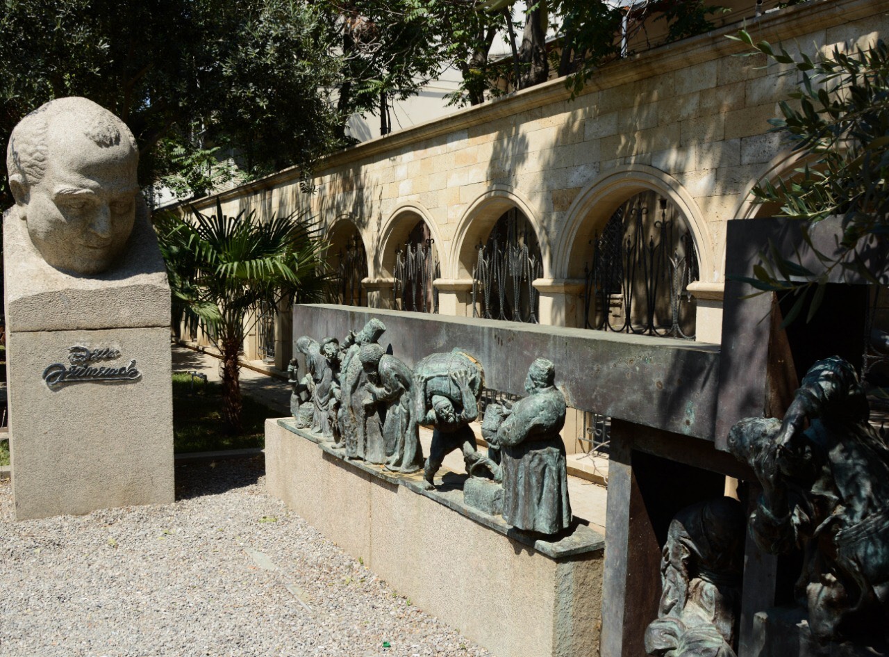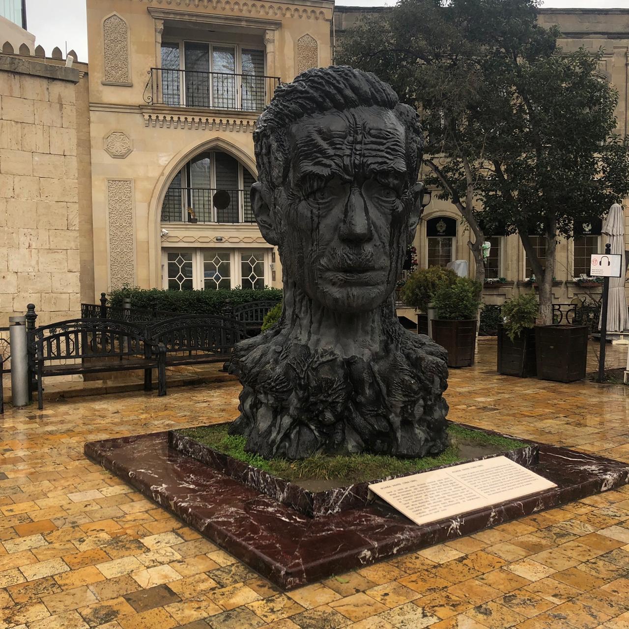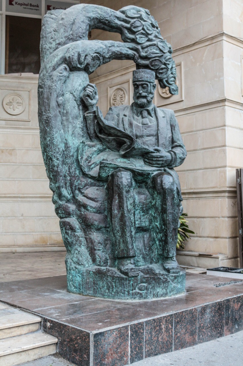 Третий памятник является, наверное, моим любимым не только в Ичеришехер, но и во всем городе. Просветителю, публицисту, общественному деятелю и основателю первой газеты на азербайджанском языке «Əkinçi» Гасан-беку Зардаби поставили замечательный памятник. Он изображен под деревом – символом плодородия и просвещения: это отсылка к названию созданной им газеты. Ведь, то «дерево», что он посадил в 1875 году в лице «Əkinçi», просветило тысячи людей и заложило основу для развития прессы и публицистики в Азербайджане.