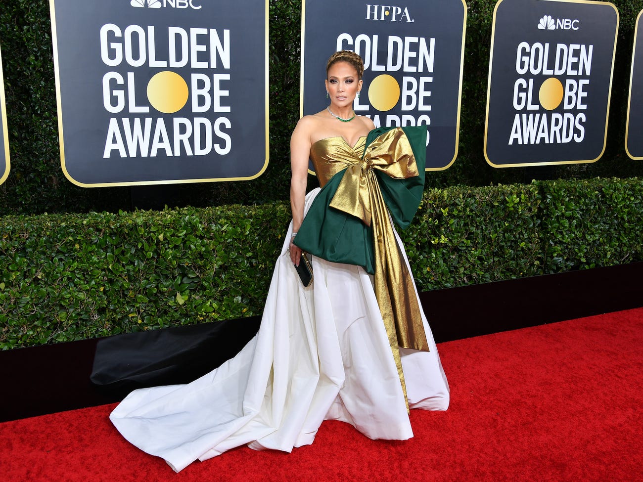 На Дженнифер Лопес – платье Valentino и ювелирный сет с бриллиантами и изумрудами от Harry Winston