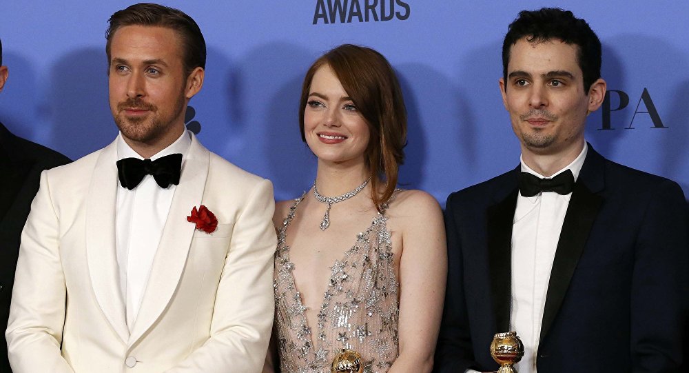 Актер Райан Гослинг и актриса Эмма Стоун, которые сыграли в Ла-Ла-Ленде главные роли, стали победителями в номинации "Лучшая мужская роль в мюзикле или комедии" и "Лучшая женская роль в мюзикле или комедии" соответственно.