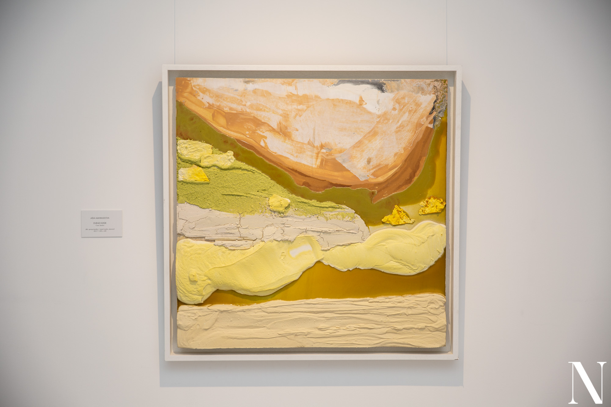 Кроме того, в выставке приняла участие дочь Аиды Махмудовой, Сорайя. Она использовала объем и цвет, чтобы передать свое мироощущение – от радостных картин до сложного клубка противоречивых эмоций, выпуклых форм и сложной многослойности.