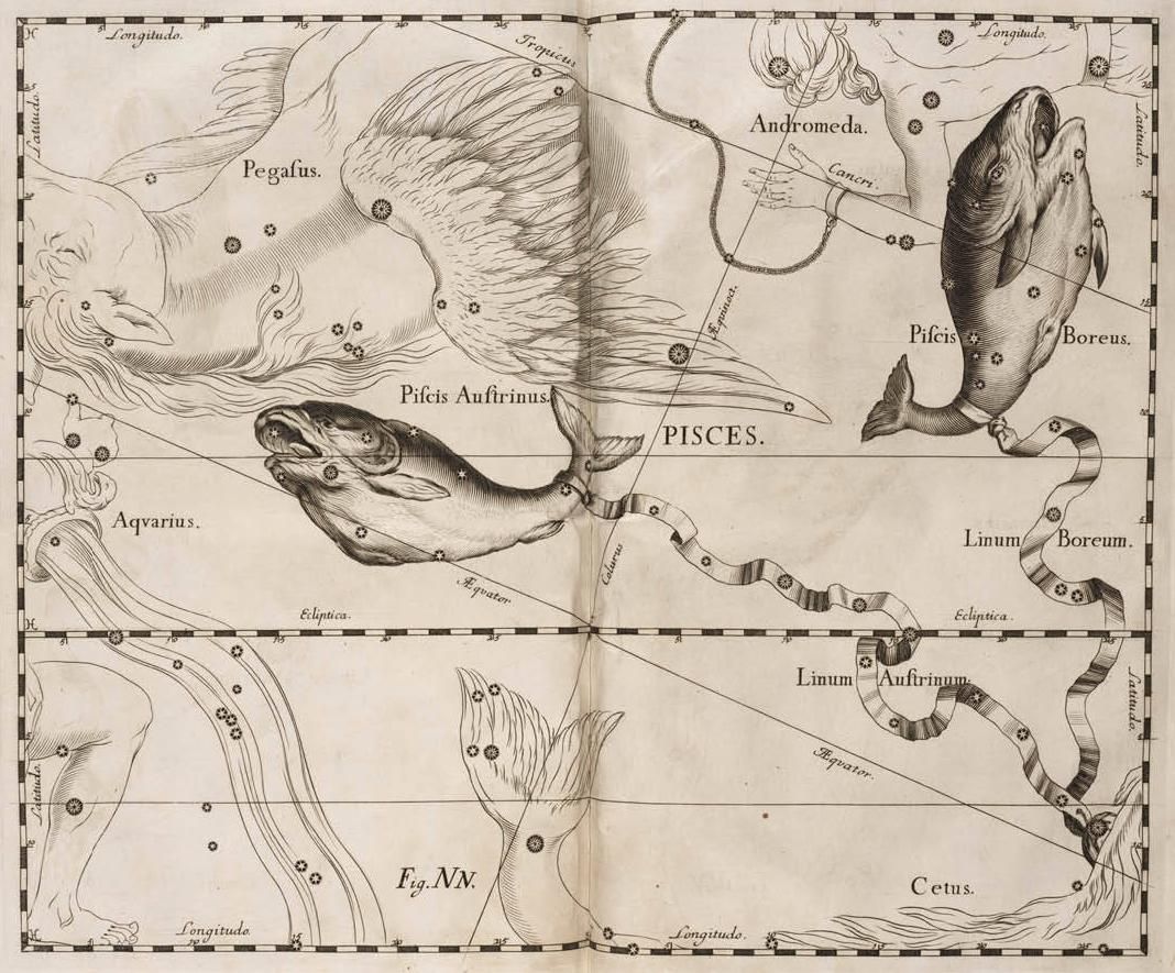 Символ этого знака схематически изображает двух рыб, соединенных некоей «пуповиной». Это толкуется как противостояние и взаимосвязь земного и божественного в человеческой душе. У шумеров этот знак обозначал слово «хвосты» и, видимо, неспроста: ведь Рыбы завершают зодиакальный круг, а с ним и календарный год. Легенды о происхождении этого созвездия у многих древних цивилизаций схожи, так как вступление Солнца в знак Рыб давало старт сезону рыбной ловли. Во многих мифах речь идет о мужчине и женщине, в страхе бросившихся в воду и превратившихся в рыб. У греков было целых два таких мифа. Один – о богине любви Афродите и ее сыне Эроте, испугавшихся Тифона, того самого, который напугал Пана. Другой повествует о паре влюбленных: нереида (морская нимфа) Галатея и сын Пана Акид бросились в воду, спасаясь от неистового циклопа Полифема, воспылавшего страстью к Галатее.