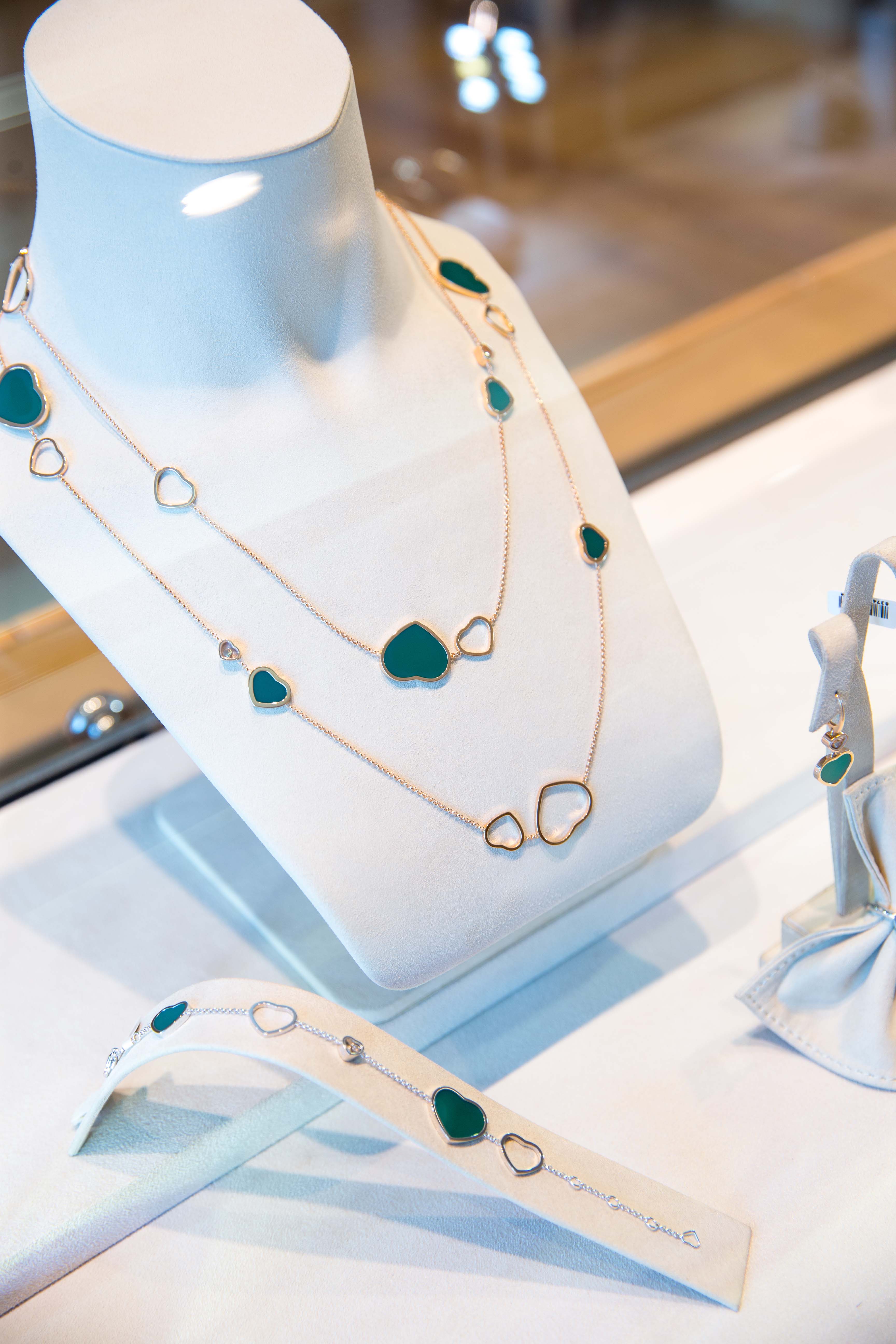 На радость поклонникам бренда, знакомая коллекция заиграла в новых красках: теперь традиционные ажурные сердечки «Happy Hearts» сочетаются с сердцами из цельной бирюзы, оникса или перламутра, расположенными на цепочках из белого или розового золота. Насыщенность и выбор оттенков позволяет каждой кокетке выбрать именно свой счастливый цвет сердца, и сочетать заветное украшение с любимыми нарядами.