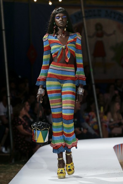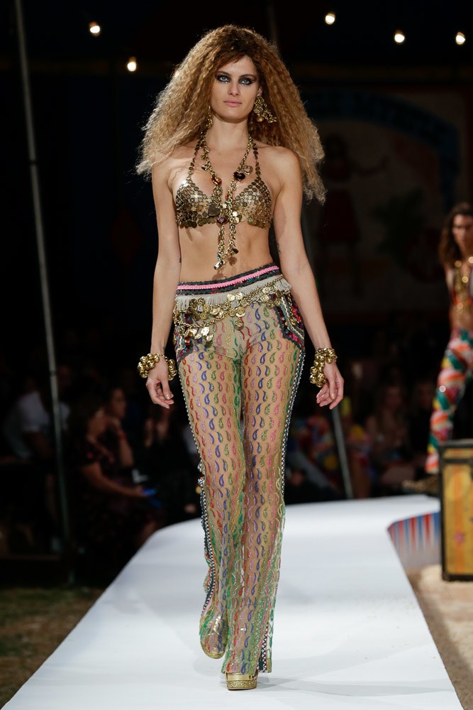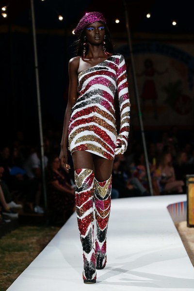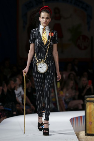 В Калифорнии состоялся показ коллекции Moschino Resort 2019. В этом году креативный директор марки Скотт Джереми выбрал весьма необычную, цирковую тематику, превратив показ в яркое шоу. На арене «выступали» модели в образе клоунов, гадалок, гимнастов, танцоров восточных танцев и даже зверей — зебры, тигра и других.