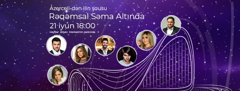 В пятницу состоится грандиозное шоу «Под цифровым небом» (Rəqəmsal səma altında), в котором примут участие Эмин, Зульфия Ханбабаева, Нигяр Джамал, Чингиз Мустафаев, Эльшад Хосе, DJ Tim и Nero Dance Crew. Ведущий – Мурад Дадашев. Вход свободный.