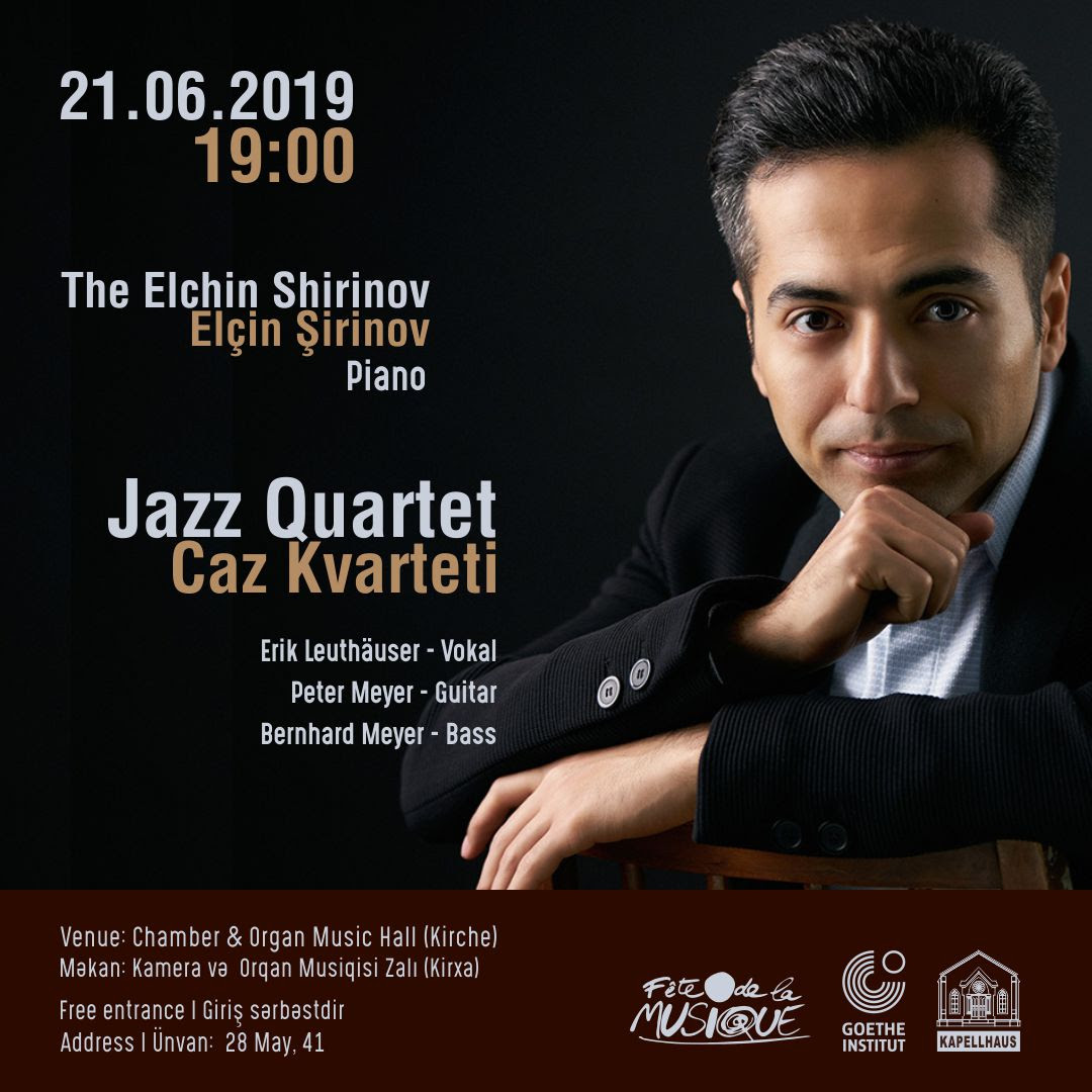 Заслуженный артист Азербайджана Эльчин Ширинов и немецкий вокалист Эрик Лойтхаузер встретились на вокальном джазовом фестивале в Польше – и решили играть вместе. К ним присоединились два известных немецких джазовых музыканта – братья Бернхард и Питер Мейеры, и благодаря поддержке Fête de la Musique и Goethe-Zentrum Baku квартет выступает в Баку в эту пятницу. Вход свободный.