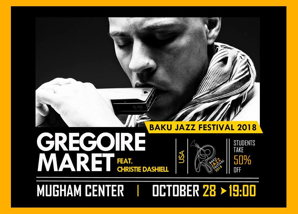 В рамках Baku jazz Fest 2018 пройдет концерт Gregoire Maret Group Feat. Christie Dashiell. Уроженец Швейцарии, Грегуар Маре известен своей джазовой игрой на гармонике.