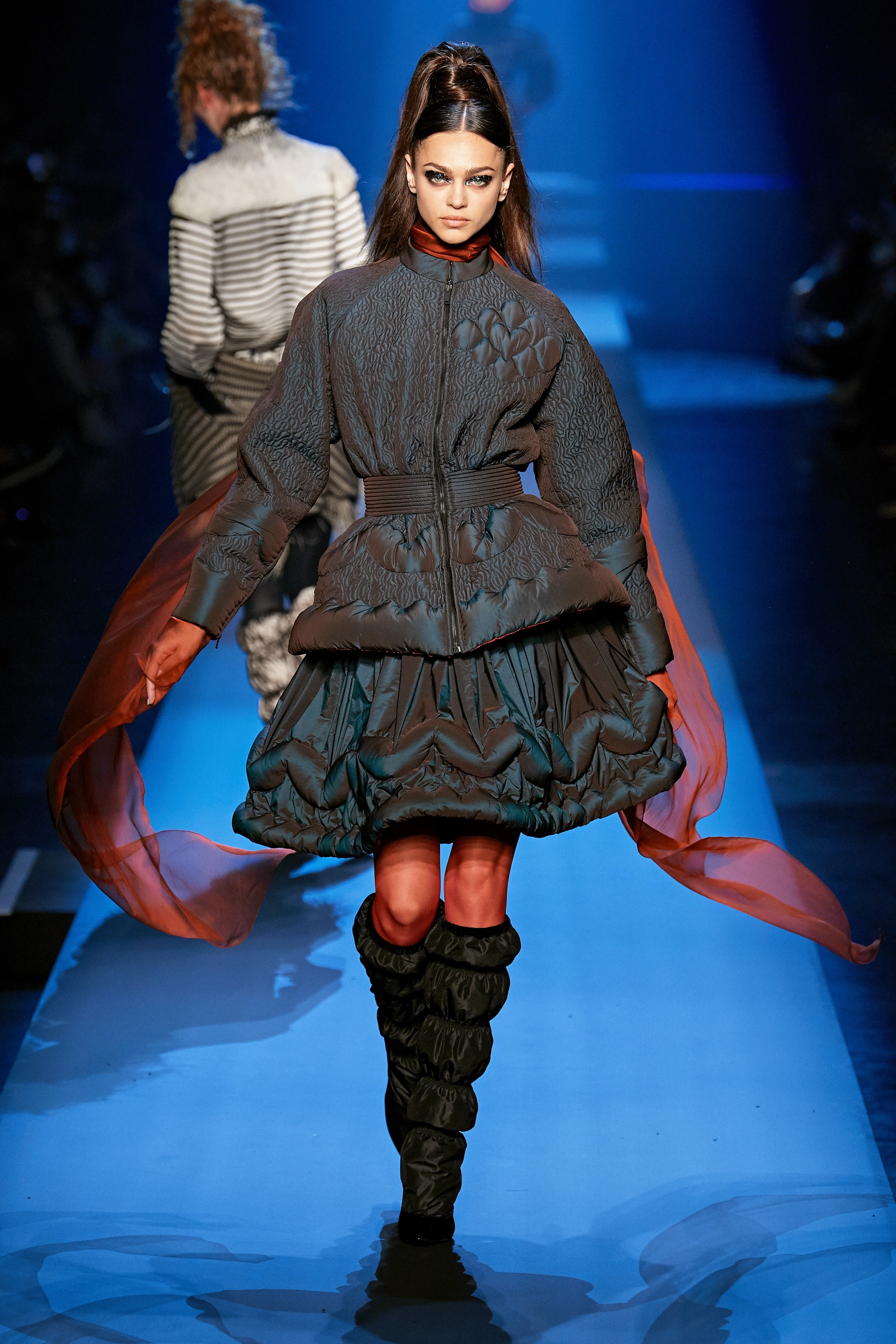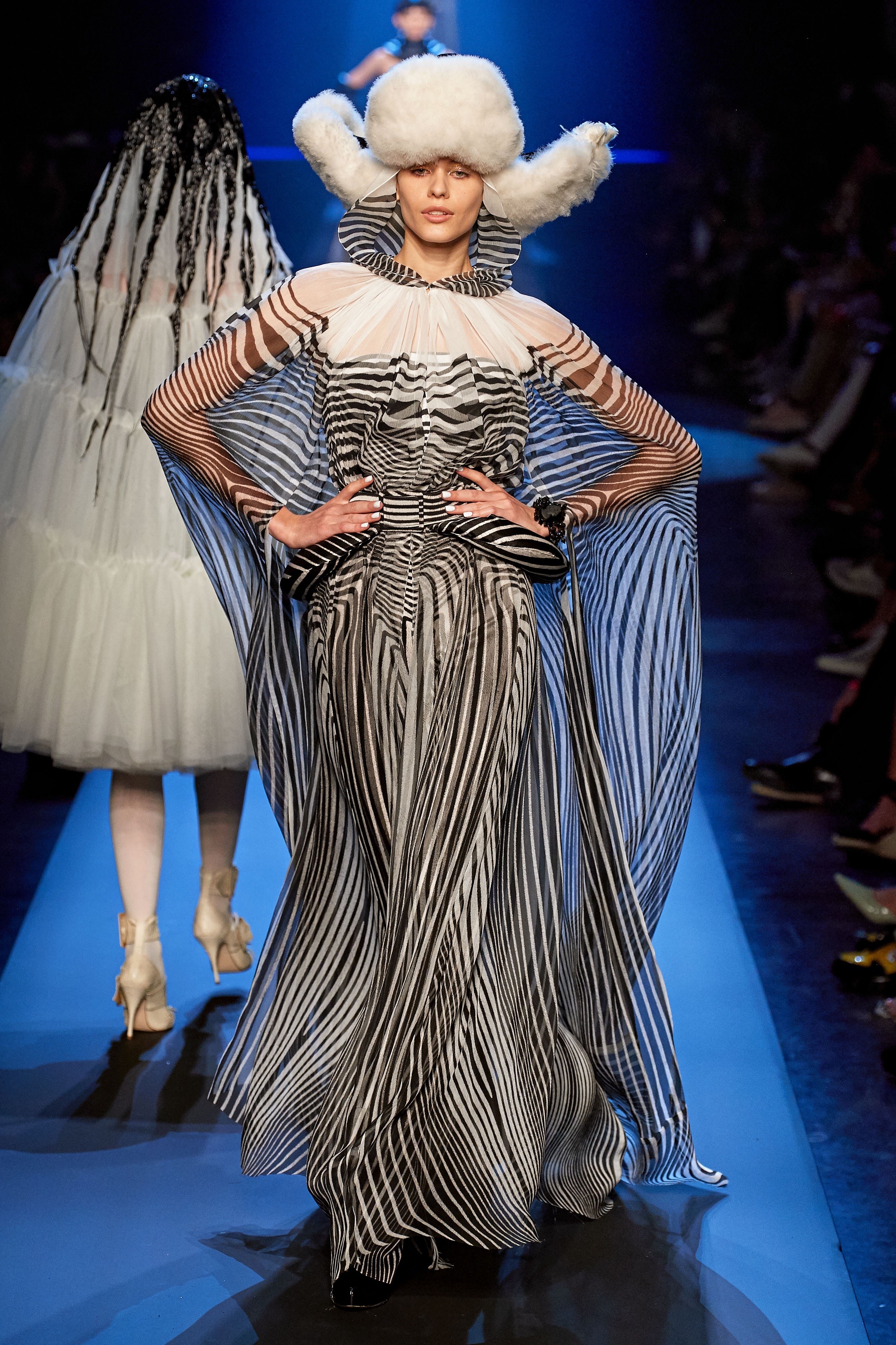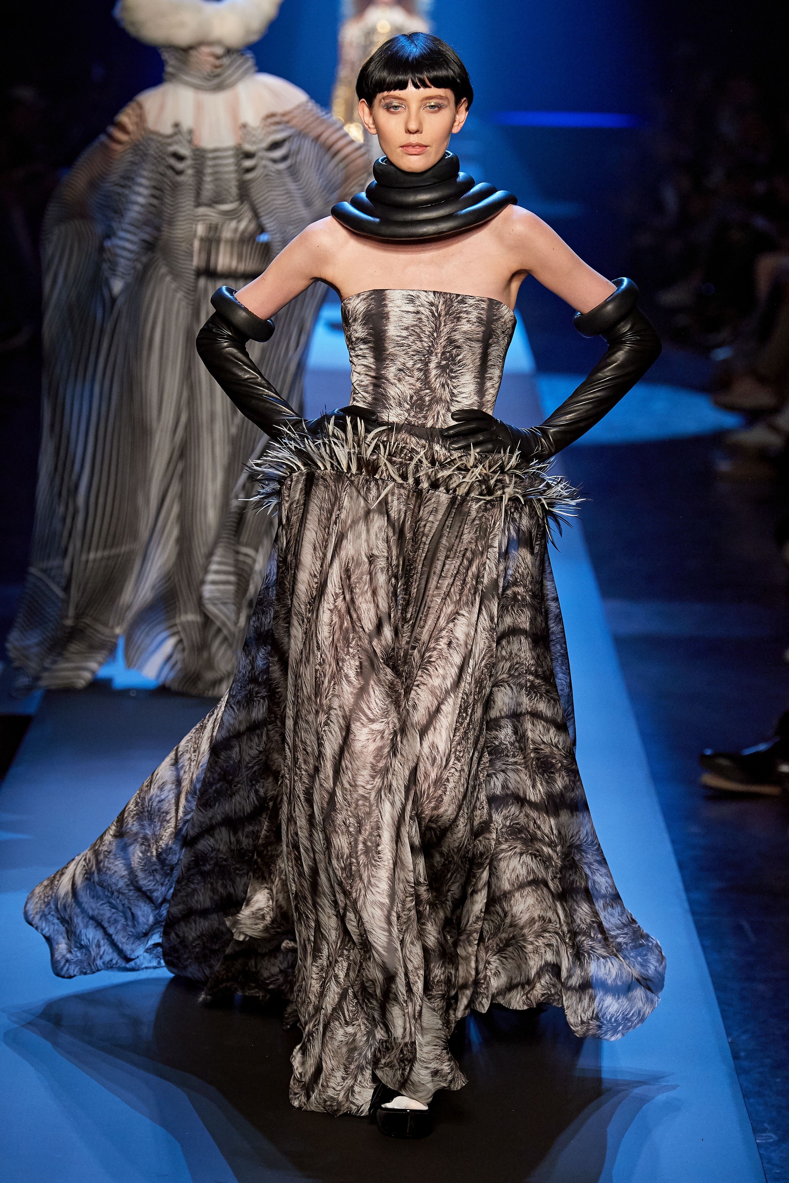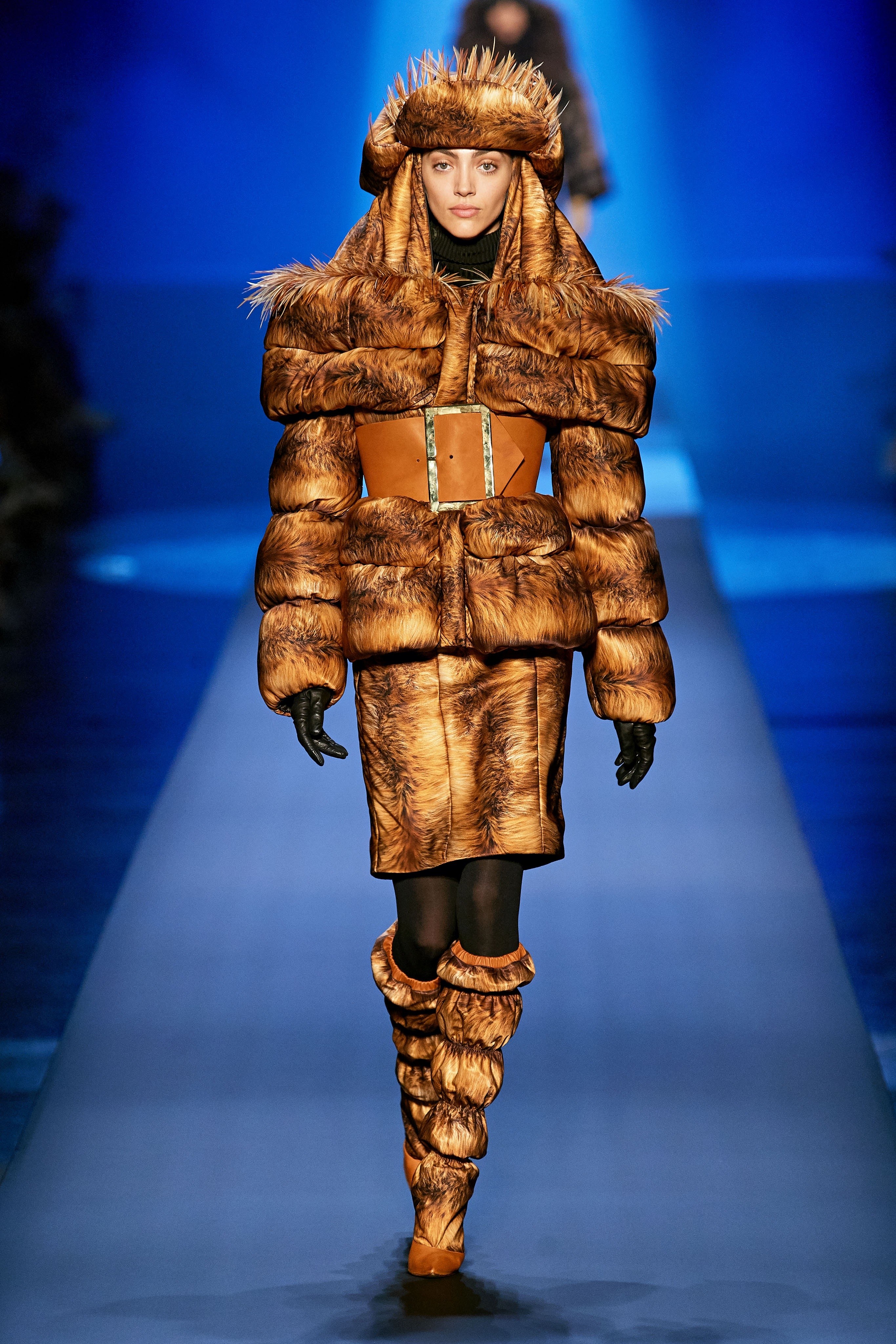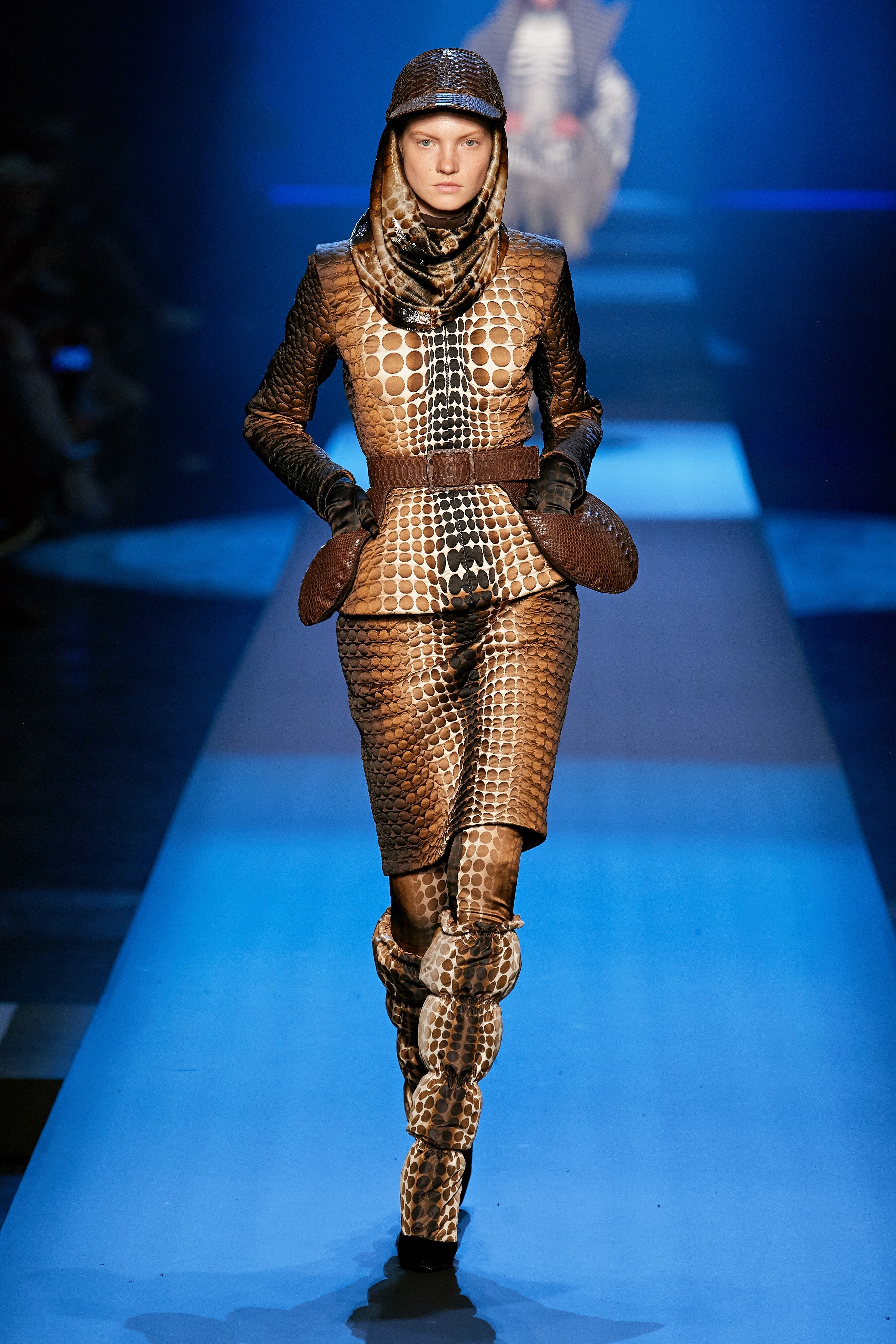 Жан-Поль Готье, который полгода назад говорил, что собирается отказаться от меха под давлением общества защиты животных PETA, теперь признается, что не вполне готов к большим переменам. Зато, поскольку на свете уже полно меховых изделий, говорит Готье, нет смысла убивать животных – можно использовать мех повторно. В осенней коллекции дизайнера можно найти верблюжьи пальто с перьями марабу, леопардовые платья и все виды животных принтов.