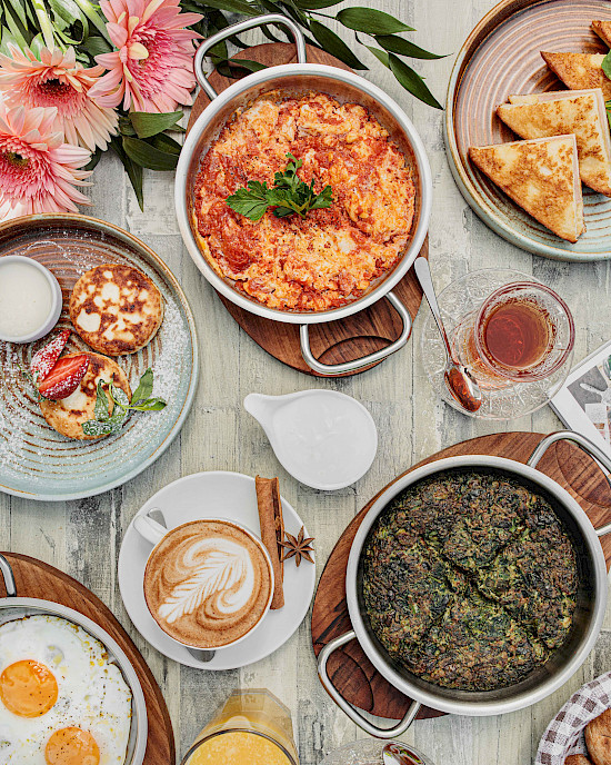 Меню пополнилось аутентичными завтраками от @c_h_e_f.tural . Начинать день здесь предлагают с национальных сыров, кю-кю с зеленью, яичницы с фермерскими помидорами – юмурта, горячего чая с чабрецом в армудах.