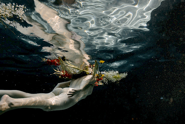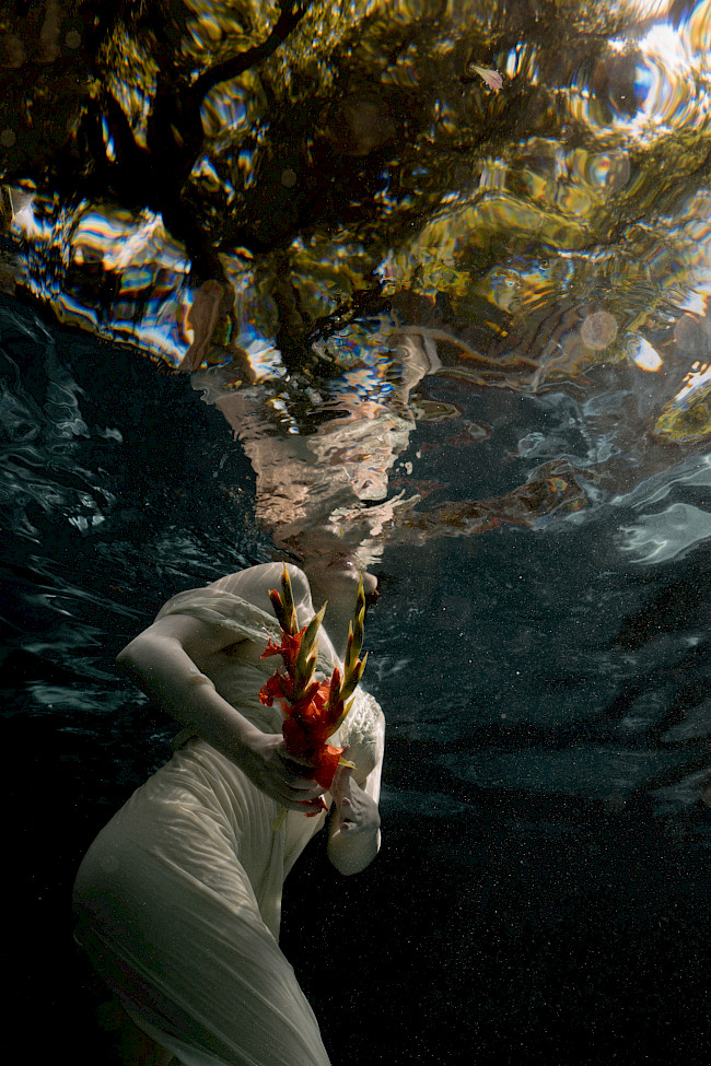 Femininity is a common thread explored through my work. I see femininity in many ways, such as depth of emotion and the source of creation. Interweaving elements such as water and the natural world celebrates the feminine psyche, intuitive nature, and importance of