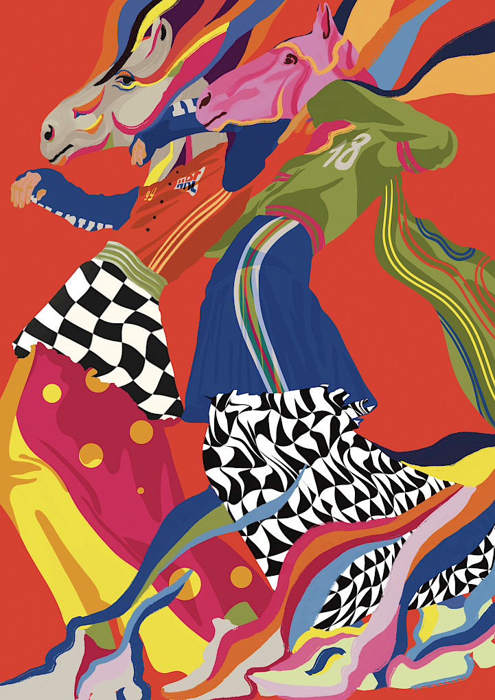 Иллюстрации Анико Алиевой, вдохновлённые азартом гоночного спорта, наполнены яркими цветами и динамичным движением. Смелые мазки и плавные формы создают ощущение скорости и энергии, оживляя каждую работу. Её творчество увлекает зрителя, где ритм и динамика сливаются в захватывающий визуальный поток.