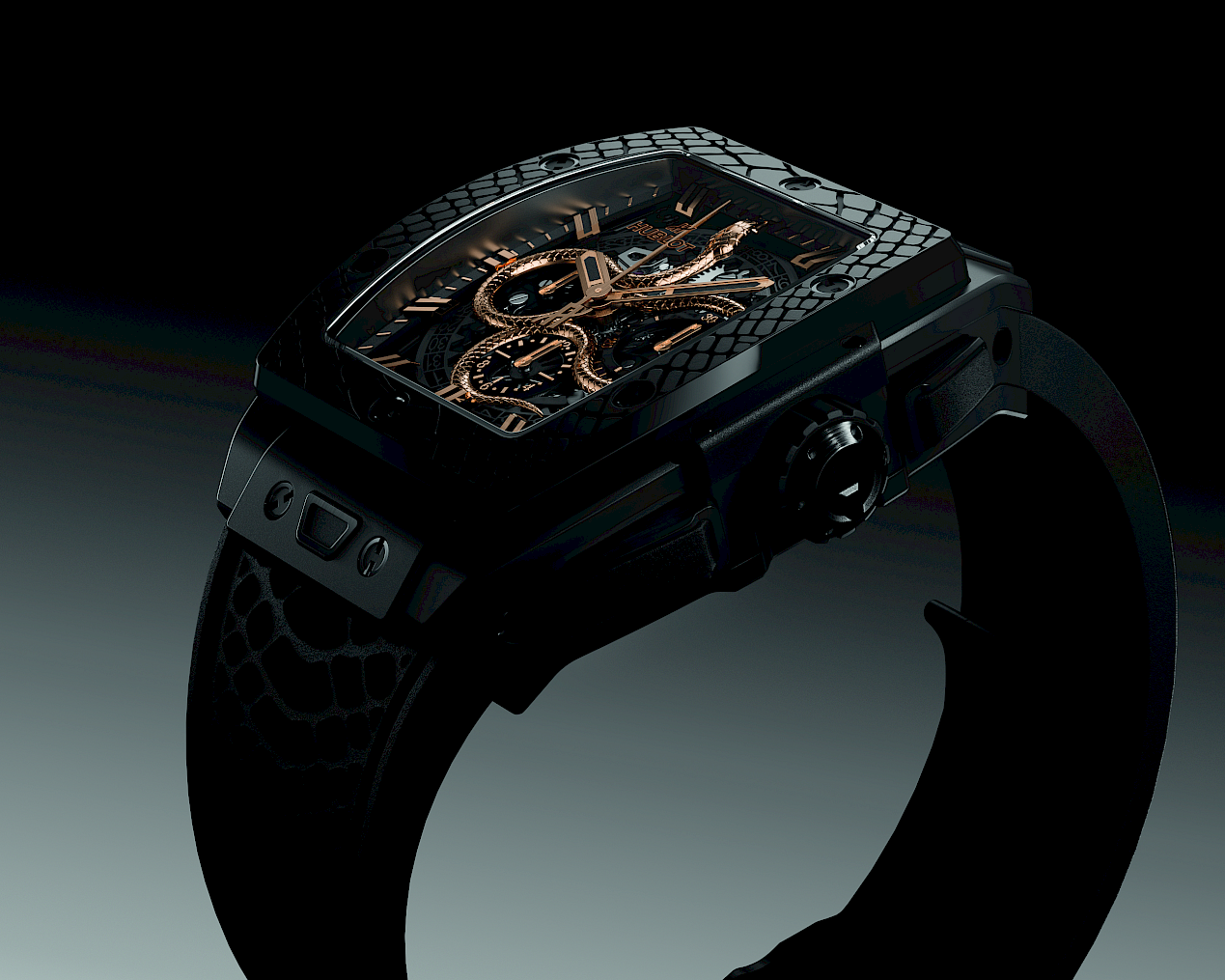 Snake is a symbol of wisdom, charm and transformation. The snake holds a special place in the Chinese zodiac system. Since 2016, Hublot has celebrated each Chinese new year with an artfully rendered special edition of the Spirit of Big Bang. Reinterpreting these symbolic animals in contemporary and unexpected ways, Hublot has crafted an ornate rendition of the snake that extends from the dial to the case and even the strap in the Spirit of Big Bang Year of the Snake.