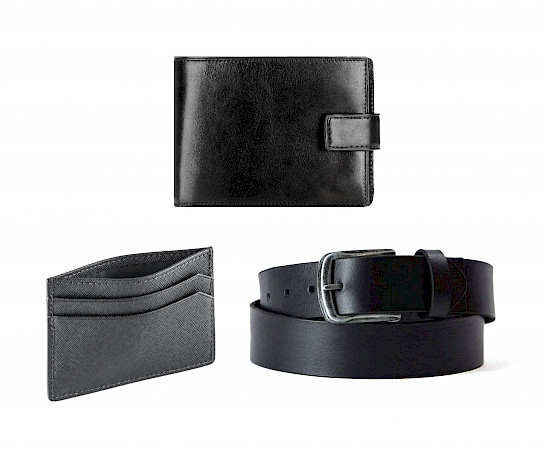Платежные карты постепенно замещают бумажные деньги, и вместо портмоне мы стали чаще пользоваться кардхолдерами. В этом наборе есть и старый добрый портмоне, и приходящий ему на замену кардхолдер, и всегда актуальный мужской ремень.