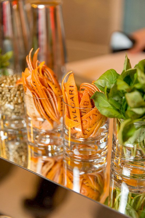 На празднике в итальянском стиле подавали апероль и попкорн в стаканчиках Bulgari. Мероприятие проходило под композиции диджея @Nicolasmun. В веселой лотерее было разыграно вино и оливковое масло из частных владений семьи Булгари, где мало кому довелось побывать, однако Ульвия Махмуд стала их гостьей, а благодаря заснятым ею кадрам там смогли оказаться и все гости вечера – любители и ценители цветных камней и искусства Bulgari.