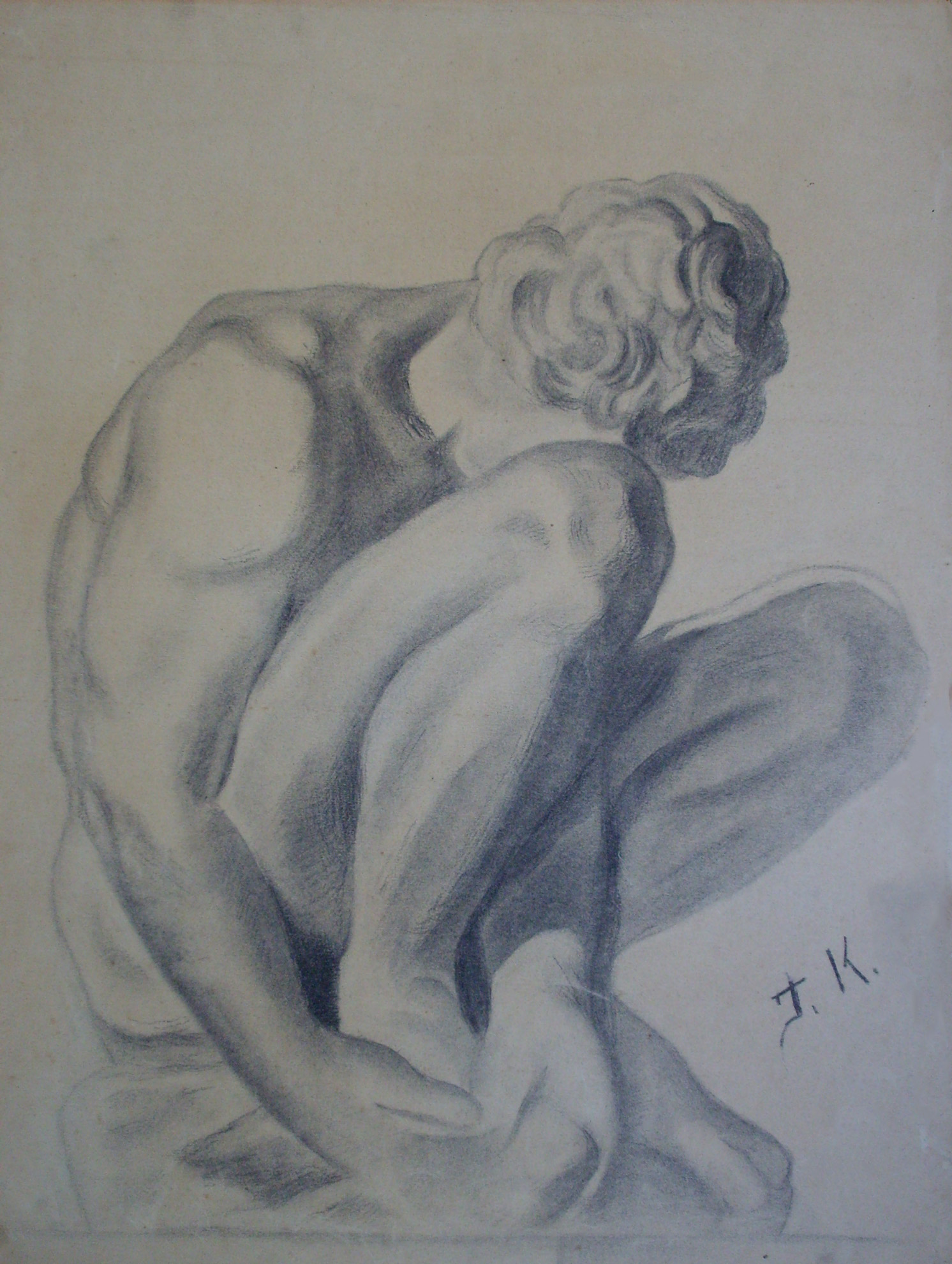 Oğlan (Mikelancelonun Sıxılmış oğlan əsərindən). Akademik rəsm