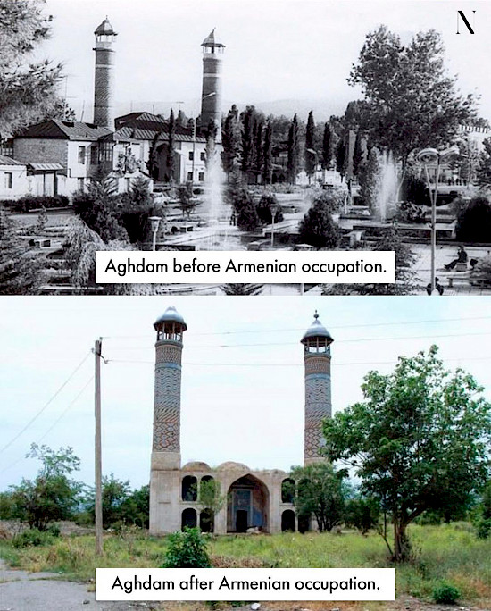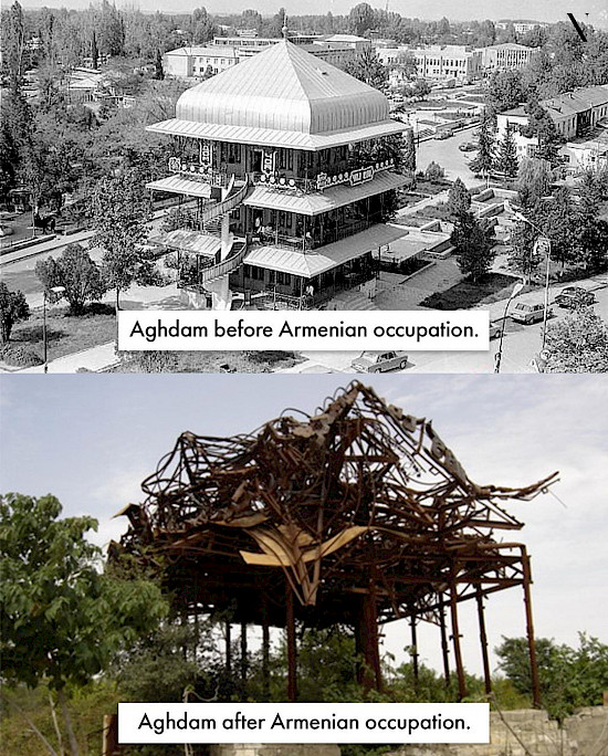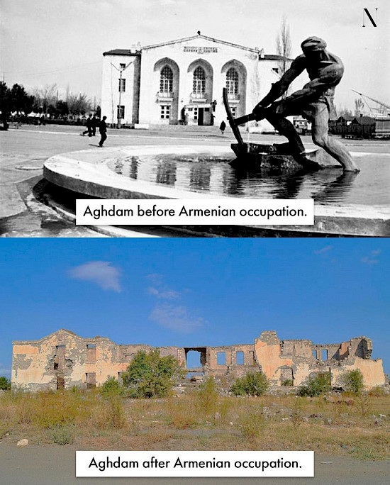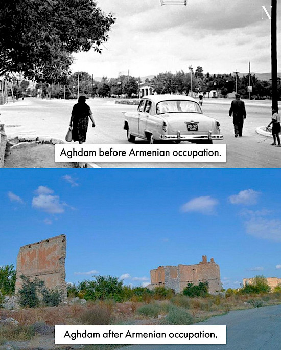 Ağdam – zəngin tarixə malik Azərbaycan şəhəridir. Erməni işğalından əvvəl, 1993-cü ildə Ağdamda tarixi abidələr, dəmiryolu stansiyası, təhsil müəssisələri, mədəniyyət və memarlıq nümunələri, o cümlədən, antik dövr və orta əsrlərə aid eksponatların nümayiş olunduğu SSRİ-də yeganə olan Çörək Muzeyi yerləşirdi. Şəhər qida sənayesi və kənd təsərrüfatı ilə tanınırdı. Lakin işğal olduğu illər ərzində şəhər erməni barbarları tərəfindən dağıdıldı və xarabalığa çevrildi. Mədəni və ekoloji terrorizm göz qabağındadır! Bu gün, 20 noyabr 2020-ci il, Ağdam Ermənistanın barbar işğalından azad olundu.