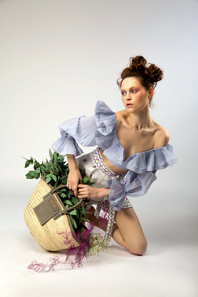 Топ, шорты ZIMMERMANN, сумка-корзина JACQUEMUS @EmporiumBaku