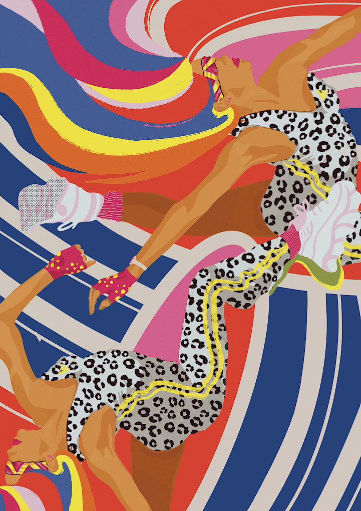 Aniko Aliyevanın illüstrasiyaları yarış idmanının həyəcanından ilham alaraq parlaq rənglər və dinamik hərəkətlərlə doludur. Cəsarətli fırça izləri və axıcı formalar sürət və enerji hissi yaradır, hər əsəri canlandırır. Onun əsərləri izləyicini özünə çəkir, burada ritm və dinamika möhtəşəm vizual axında birləşir.
