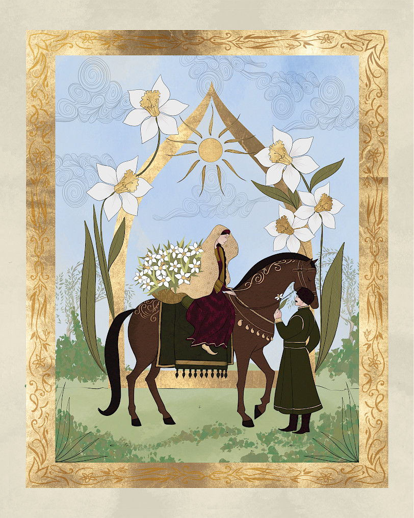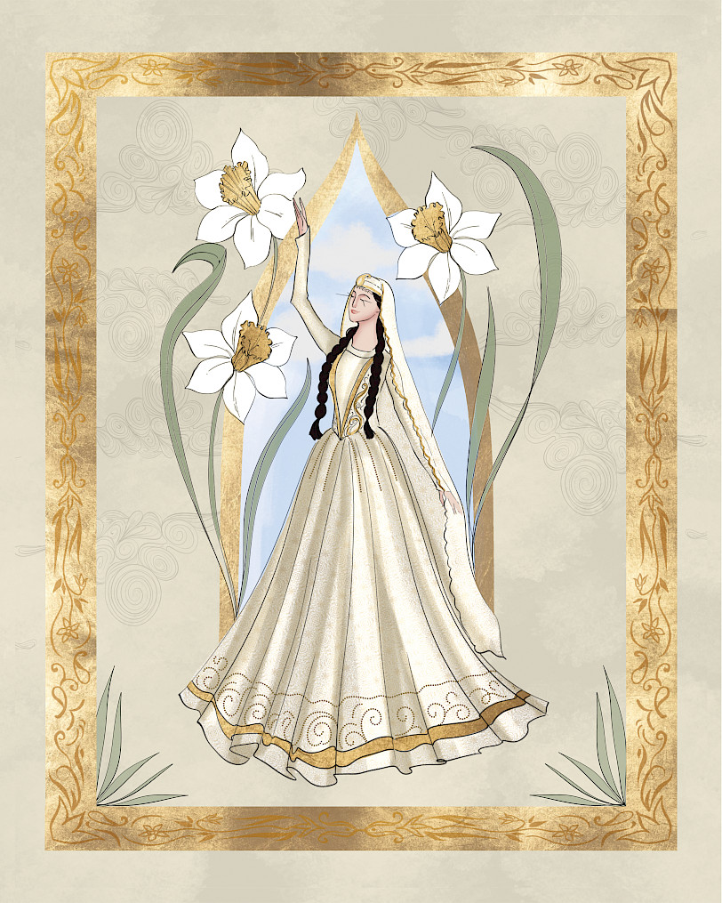 Nərgiz Alee'nin illüstrasiya seriyası Şərq miniatürlərindən ilham alaraq Azərbaycan ənənələrini və geyimlərini canlandırır. Zərif detalları və zəngin rəngləri ilə bu illüstrasiyalar irs və mədəniyyətin gözəlliyini tərənnüm edir.