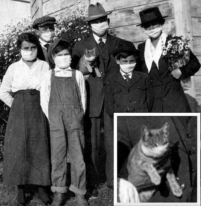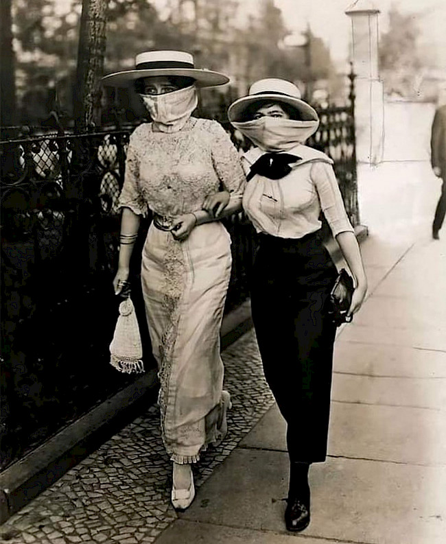 Bəşər tarixində pandemiya ilk hadisə deyil. "İspan qadın" – Birinci Dünya Müharibəsinin son aylarında başlayan və təxmini hesablamalara görə yüz milyona yaxın ölümlə nəticələnən 1918-ci ilin ispan qripi belə adlanırdı. Bu qripdən təkcə İspaniyada səkkiz milyon insan öldü. Bəzi ölkələr il boyu ictimai yerləri, məhkəmələri, məktəbləri, kilsələri, teatrları bağladı və kütləvi izdihama qadağa qoydu. Taverna və restoran sahibləri müştərilərə yalnız küçədə xidmət edirdi. Bu pandemiya bəşəriyyət tarixindəki ən böyük fəlakətlərdən biridir. Sanitar sarğıları papaqlara bərkidən iki madamın kadrları qalıb, o zamanlar həmin sarğılarsız evdən çıxmaq olmazdı.