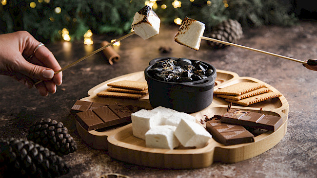 - Vam odda qızardılması və xırçıltılı südlü şokoladlı krekerin üzərinə qoyulması mümkün olan ətirli evdə hazırlanmış zefir.