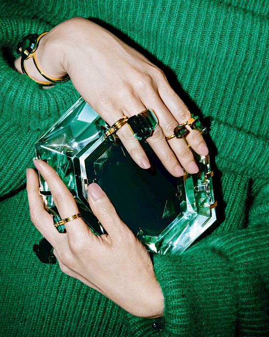 Marina Raphael olaraq müsbət təsir göstərməyin və geyilə bilən sənət predmetlərinə nəfəs verməyin vacib olduğunu hesab edirik. Bizimlə eyni estetikanı paylaşan və yaradıcılığın sərhədlərini aşan bir çox tərəfdaşlarla əməkdaşlıq edirik, onlarla məhdud kolleksiyalar yaradırıq. Ən uğurlu əməkdaşlıqlardan biri Evangeli Smirniotaki ilə 5000-dən çox Swarovski kristalı ilə bəzədilmiş çanta dizaynı oldu. Sonra Swarovski markasının kreativ direktoru Covanna Engelbert ilə birlikdə işləyərək, zinət əşyalarını xatırladan eklektik çanta dəsti hazırladım. Üç dizaynın hər biri Swarovski ənənəsinin qabaqcıl sənətkarlığı ilə birləşir, bu da üzərində əsl zinət əşyasını daşımağa imkan verir. Nəhayət, modanın ekologiyasına olan baxışımız üst-üstə gələn eko-inkişafı üzrə konsultant Doyna Çioban ilə birlikdə tamamilə veqan dəridən və emal edilmiş təbii pambıq qarışığından hazırlanmış üç möhtəşəm əl işi çantası yaratdıq. Əksər hallarda plastikdən hazırlanan veqan dərindən fərqli olaraq, çantalarımızın hazırlanmasında sənayedə alma qalıqlarından əldə edilmiş unikal dəridən istifadə edirik.