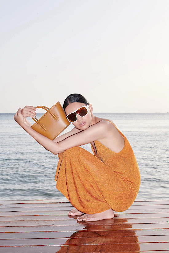 Vaxtımın çox hissəsini işlə məşğul olduğum üçün özümə praktik Mini Riviera çantasını seçmişəm. O, bütün gündəlik ehtiyaclarımı qarşılayır və ən sadə geyimlə belə uyğun gəlir. Çantamdakı bəzi şeylər gərgin günün öhdəsindən gəlməyə kömək edir: SPF-li yüngül gündüz kremi, yığcam flakonda təravətləndirici ətir, nəmləndirici dodaq balzamı, qulaqlıqlar və kiçik poverbank, çünki telefonumun batareyası həmişə boşalır!
