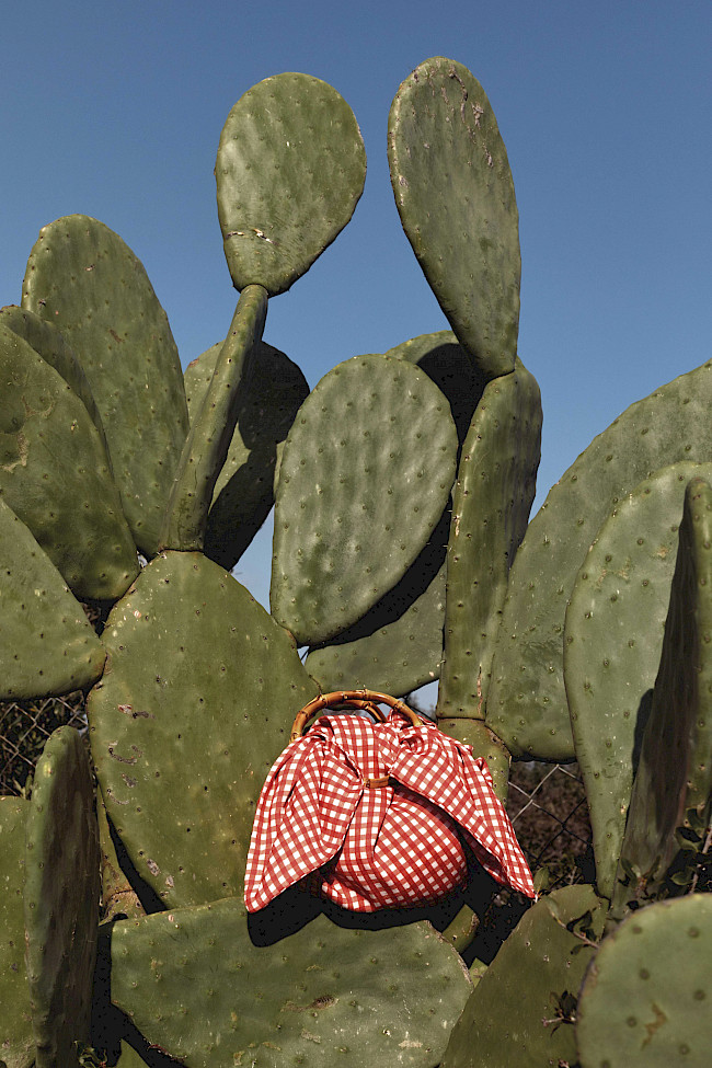ASYA: Sleeper bags are made in the traditional Japanese technique of Furoshiki. The first one is a transformer bag called ‘This is not a bag.’ This spacious bag is ideal for going to the beach. When untied, the bag transforms into a spread for the beach or on which to have a picnic. The second one is a small linen Bambola bag with ample bamboo handles, ideal even for an evening look.